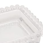 Se você se preocupa com a saúde sabe que a manteiga é a melhor opção em relação a margarina, pois é mais natural e não possui gorduras trans. Dessa forma, adquirir a Manteigueira Wolff Pearl é ideal, pois somente ela irá manter a temperatura, consistência e condição ideal para consumo.A manteiga exige um armazenamento diferenciado para se manter fresquinha, não enrijecer nem se tornar liquida, e principalmente, para cultivar o sabor intacto. Por essa razão, essa peça é essencial! Ela possui tampa que se encaixa perfeitamente na base, com puxador texturizado para facilitar a pega e tornar o design mais elegante. Ela também é fabricada em Cristal de excelente qualidade, que não mancha, não libera substâncias e não armazena odor, e por ser translúcido, facilita a visualização do interior.Além disso, a Manteigueira Pearl da Wolff é brilhante e cristalina, com maior incidência de luz que proporciona um beleza radiante para o visual, aliado a lapidação de bolinhas inspirada na beleza única das pérolas, essa peça une a funcionalidade com um design elegante e super sofisticado, garantindo requinte para a decoração de sua mesa posta!