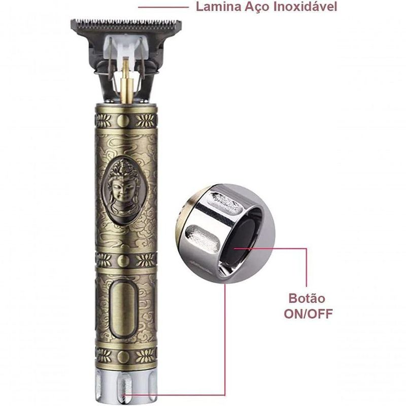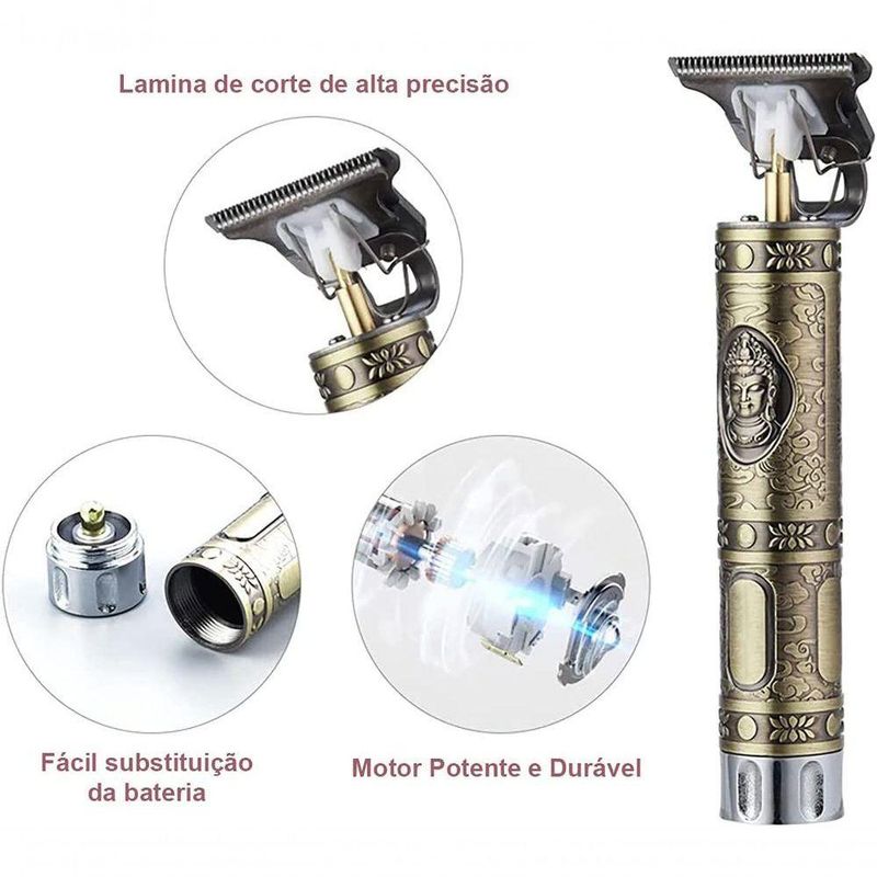 Máquina Acabamento Corte Cabelo Barba -2486 BudaProduto com qualidade premium, motor com alta potência e durabilidade, além de uma lâmina eficaz e afiada. Este produto trabalha com uma potente bateria, a qual é recarregável e tem duração estimada de 120 minutos por carga. O kit tem seu próprio carregador, o qual está incluso no pacote, é de fácil uso e totalmente com entradas e conexões USB. Seu design e lâmina trazem conforto ao corte. Por ser uma máquina sem fio, dá maior liberdade ao , para que o trabalho e dos cortes sejam os mais precisos possíveis. Excelente item para acabamentos como barba, desenhos, disfarces, pezinhos e tudo o que sua criatividade e habilidade lhe permitirem. Itens inclusos: - 1 Máquina (Desenho Buda - Potência de 5w) - 1 Carregador USB - 1 Bateria Recarregável (aprox. 3h de recarga e 2h de uso) - 3 Pentes - 1 Escova para Limpeza - 1 Óleo Especificações: Marca: Hair Clipper Modelo: WS-T99 Tamanho: 14,5cm x 4cm Peso: 150 g
