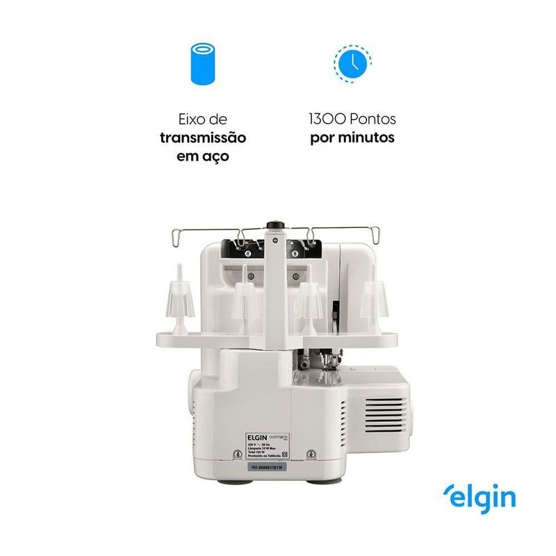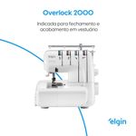 Máquina De Costura Overlock 1.300 Pontos/minuto Elgin 110VPotencialize sua criatividade no ateliê de costura com a Máquina Overlock 2000 Elgin. Ela é perfeita para quem busca evoluir na costura criativa e artesanato, sendo funcional, fácil de usar e permite fazer acabamentos e fechamentos em roupas, trabalhando com diversos tipos de tecido e possibilitando a confecção de peças próprias.Com alça embutida, esse modelo é transportável para qualquer lugar. Com a Overlock 2000 Elgin, é possível cortar e costurar em um único passo. Sua potência de 110W e seu eixo de transmissão em aço garantem uma maior resistência e durabilidade.Essa máquina costura é robusta com 1 ou 2 agulhas, oferece uma velocidade de até 1.300 pontos por minuto e conta com uma lâmpada que facilita a visualização durante a costura. Além disso, possui um braço-livre, o que possibilita realizar costuras tubulares, como barras e punhos.Com diversos pontos disponíveis, como bainha enrolada (fru-fru), overlock largo, overlock estreito, ponto cadeia (04 fios), costura com 3 e 4 fios, a Overlock 2000 Elgin oferece uma variedade de opções para suas criações. A passagem de linha é ilustrada e identificada por cores, tornando o processo mais fácil. Também possui um seletor de comprimento do ponto de fácil acesso, faca superior retrátil e ajuste na largura do corte de 4mm e 6mm.A Máquina Overlock 2000 da Elgin completa seu ateliê com um produto de qualidade de uma empresa com mais de 70 anos de tradição em costura. Além disso, a Elgin oferece garantia de 1 ano, para que você possa usar sua máquina Overlock sem preocupações.