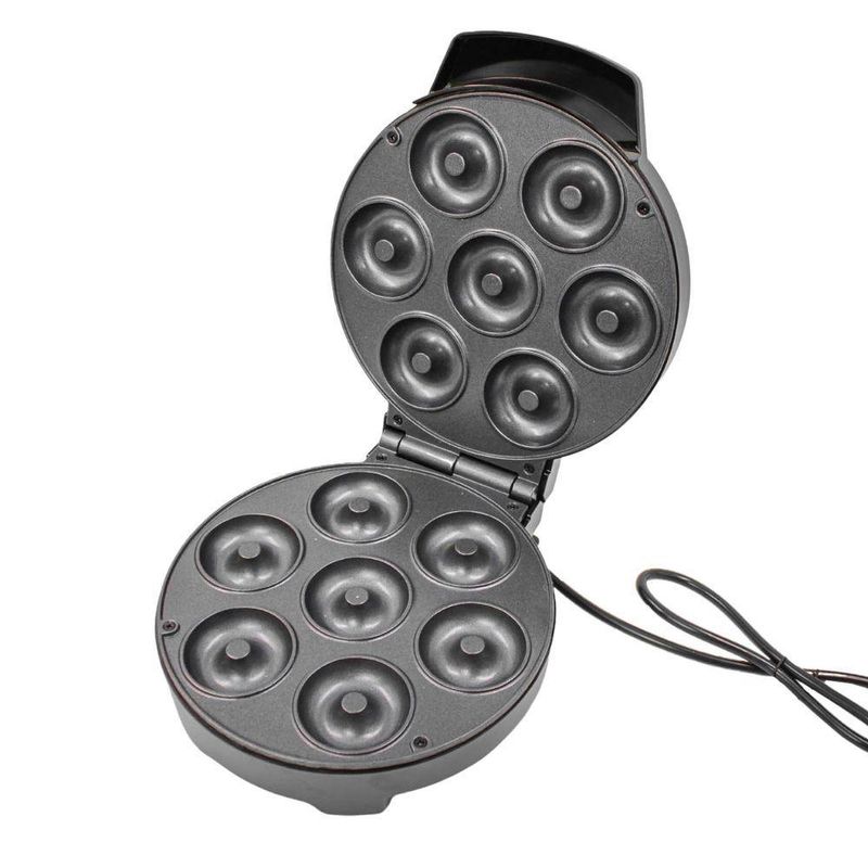 Maquina De Fazer Donuts Rosquinhas Confeitaria Doce Culinaria 110V 1000WMáquina De Fazer Donuts Rosquinhas Confeitaria Doce Culinária 1000W Com a Máquina Elétrica de Donuts você pode fazer seus próprios mini donuts fofos e saborosos em casa de forma prática e rápida. Permite fazer sete mini donuts para você ou sua família e amigos em questão de minutos, basta escolher a sua massa favorita (mistura para bolo, mistura para brownie, massa, etc.) e aproveitar a praticidade. Sua superfície é antiaderente, fazendo você sempre ter donuts com formatos perfeitos. A parte inferior possui pés antiderrapantes para fornecer uma superfície de fabricação mais estável. Especificações Técnicas: - Modelo: Máquina Donut Rosquinha - Material: Plástico, Metal, Componentes Elétrico. - Quantidade de Donuts: 7 - Tamanho do Donut: 5,5cm (Diâmetro) - Voltagem: 110v - Potência: 1000W - Plugue de Tomada: Padrão (EU) - Dimensões Aprox.: 25cm (Comprimento) X 20cm (Largura) X 9cm (Altura) - Peso Aprox.: 1200g Itens Inclusos na Embalagem: - 01x Máquina Donut Rosquinha