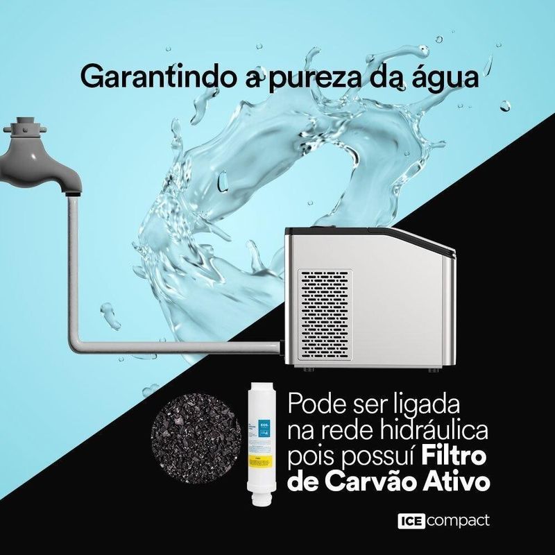 Máquina De Gelo Eos 35kg Ice Compact Inox EMG35 220VMáquina de Gelo EOS 35kg Ice Compact Inox EMG35Tenha sempre suas bebidas geladinhas a qualquer momento do dia!Destaques- Design Moderno: Com tampa transparente, agregando elegância à decoração do seu ambiente.- Sensor de Gelo: Possui um sensor que avisa quando o compartimento de gelo está cheio.- Turbo Ice: Produz 36 cubos de gelo em até 15 minutos.- Filtro de Carvão: Filtro de carvão ativo para que você faça seu gelo sem se preocupar com a fonte d’água.- Fácil Instalação: Pode ser instalada diretamente na rede de água ou abastecida manualmente.- Prático: Função de auto limpeza que facilita a utilização.- Alta Capacidade: Produz até 35 kg de gelo por dia, ideal para bares, restaurantes ou cozinhas.- Compacto e Portátil: Cabe em vários cantinhos, vai aonde você quiser e combina com qualquer ambiente.Especificações TécnicasModelo: EMG35Capacidade de Produção: 35 kg/diaCapacidade de Armazenamento: Até 4 kgCapacidade do Reservatório: 3,8 LCapacidade por Ciclo: 36 cubos de gelo a cada 15 minutosPotência: 200WGás Refrigerante: R290 (42g)Cor: InoxMaterial: Corpo em inoxDiâmetro da Mangueira para Entrada d’Água: 1/4Acessórios Inclusos: Pá de gelo, filtro de carvãoAdaptável: Pode ser alimentada com água automaticamente (rede hidráulica) ou manualmente (tampa superior)Eco-Friendly: Refrigeração por compressor super silencioso com gás ecológicoMais Saúde: Gelo mais puro com filtro de carvão ativoCom Embalagem: Largura x Altura x Profundidade: 41,5 x 47,5 x 56 cmPeso Com Embalagem : 21 kgSem Embalagem: Largura x Altura x Profundidade: 36 x 42,3 x 50 cmPeso Sem Embalagem: 17 kgEAN 127V: 7898735982776EAN 220V: 7898735982783Garantia: 12 meses