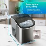 Máquina de Gelo HQ 12kg Turbo Ice Premium Inox HQ-MG12KGDP - 220VFeita para o ritmo dos seus encontros, a HQ-MG12KGDP Inox coloca gelo na sua rotina com agilidade e constância: as primeiras levas chegam em 7–12 minutos e, sempre que você esvazia o cesto, a produção reinicia automaticamente. No painel, escolha 2 tamanhos de cubo (P/G), acompanhe tudo pela janela da tampa e, no fim do dia, acione a autolimpeza (30 min) e finalize no dreno frontal. Compacta, elegante e pensada para pessoas exigentes, é a máquina que acompanha do churrasco ao after.HQ, para todos os momentos.Por que isso importa no dia a dia?- Fluxo garantido: retirou o gelo, a reposição já recomeça.- Controle na ponta do dedo: 2 tamanhos de cubo e painel intuitivo.- Higiene fácil: autolimpeza automática + dreno frontal.- Cabe em qualquer bancada: medidas compactas e 6,2 kg.Destaques técnicos e funcionais:- Produção: 12 kg/24 h- Ciclo por leva: 7–12 min- Tamanhos de cubo: Pequeno e Grande- Sensores: Falta d’água e cesto cheio- Refrigerante: R600a- Classe climática: T (Tropical)- Acabamento: Inox com janela na tampaCenários de uso:Área gourmet, varanda, sala de estar, escritório/coworking, pequenos eventos, recepções.Orientações de uso:- Antes de ligar: após transporte, aguarde 1 h para o fluido assentar; faça a limpeza inicial.- Ambiente: 10–40 °C e 10 cm livres ao redor para ventilação.- Água: use água potável e troque a cada 24 h.- Queda de energia: aguarde 3 min antes de religar.Segurança e sustentabilidade:- R600a é inflamável – não perfure o circuito; manutenção apenas por assistência autorizada.- Descarte responsável do produto/embalagem conforme as normas brasileiras.Itens na embalagem:Máquina de gelo, Cesto de gelo, Pá de gelo, Manual de instruções.Especificações técnicas:Marca: HQModelo: HQ-MG12KGDPCor: InoxFrequência: 60 HzAgente espumante: ciclopentanoCapacidade total(Kg): 12Dimensões do Produto:Altura: 29cmLargura: 22,2cmProfundidade: 29,4cmPeso: 6,2KgGarantia:01 Ano (Sendo 3 meses de garantia legal e mais 9 meses de garantia para defeito de fabricação).