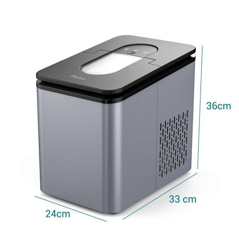 Máquina De Gelo Philco 12kg 2,2L PMG12A 220VCansou de correr atrás de gelo para seus eventos? A Máquina de Gelo Philco transforma sua experiência de entretenimento com uma produção de gelo impressionante, ela faz 12kg diários, suficiente para manter suas bebidas sempre no ponto ideal.Leve, compacta e versátil, esta máquina acompanha seu estilo de vida, seja em casa, no escritório ou na casa de praia. A cada 8 minutos, você obtém 9 cubos perfeitos de gelo cristalino. Seu reservatório de água de 2,2L e compartimento de armazenamento de 0,7Kg garantem praticidade sem interrupções.O sistema de refrigeração por compressor proporciona eficiência incomparável na produção de gelo, enquanto os sensores inteligentes monitoram tanto o nível de água quanto a capacidade do cesto. Assim, você não precisa se preocupar com o funcionamento pois a máquina interrompe o processo automaticamente quando necessário.Eleve seus momentos de lazer e confraternização a outro patamar! Adquira sua Máquina de Gelo Philco e descubra como é simples manter drinks e bebidas perfeitamente gelados em qualquer ocasião!- Capacidade de produção diária: 12 kg por dia- Capacidade do Reservatório de Gelo: 0,700g- Capacidade do Reservatório de água: 2,2 Litros- Tempo do ciclo da Produção de gelo: 8 minutos- Quantidade de cubos por ciclo: 9- Tipo de sistema de refrigeração : Compressor- Tipo do Gás: R600a- Sistema de abastecimento de água manual- Tensão/Hz: 127V 60Hz / 220V 60Hz- Tamanho de Gelo: L = 19,40mm P = 19,60mm.Especificações Técnicas:Marca: PhilcoModelo: PMG12AEstado: NovoCor: CinzaAltura do produto: 33 cmLargura do produto: 24 cmComprimento do produto: 36 cmPeso do produto: 7,768 kgAltura com embalagem: 37,5 cmLargura com embalagem: 41,5 cmComprimento com embalagem: 28,5 cmPeso com embalagem: 8,682 kgGarantia (Dias): 360Observação: Somente faturamos para o nosso consumidor final, ou seja, não faturamos pedidos para CNPJ por este portal de vendas;