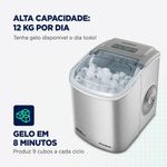 Máquina de Gelo Turbo Ice Premium Mondial MG-12-GI 60Hz 127V A Máquina de Gelo Turbo Ice Premium é garantia de praticidade e sofisticação na produção de gelo. Com capacidade de produzir até 12 kg por dia, ela é perfeita para deixar bebidas e drinks refrescantes no almoço de família, churrasco com amigos e até na rotina diária nos dias mais quentes. Possui design moderno e dispensa instalação hidráulica, preparando gelo com facilidade em menos de 10 minutos. Saiba mais sobre a MG-12-GI da Mondial:ALTA CAPACIDADE: 2 KG POR DIA: A máquina de gelo Mondial tem capacidade de produção diária de até 12 quilos. Dê adeus à preocupação se encheram a forminha de gelo ou não!GELO EM 8 MINUTOS: Produz 9 cubos a cada ciclo de 8* minutos. Incrível, né? Produza gelo de forma superágil!*O tempo de preparo pode variar dependendo das condições do ambiente e temperatura da água.2 TAMANHOS DE GELO: Antes de iniciar o ciclo, selecione entre cubos pequenos ou grandes.RESERVATÓRIO DE ÁGUA: 1,3 LITROS: Possui reservatório de água com capacidade de 1,3 litros. Garantia de bebidas geladas a hora que desejar e em qualquer lugar!PAINEL DIGITAL + INDICADOR DE FUNCIONAMENTO: O painel digital possui uma operação intuitiva e é fácil de utilizar. Além disso, o painel possui indicador para acrescentar água ou para esvaziar o cesto de gelo.FÁCIL OPERAÇÃO: Esqueça as complicações com instalação hidráulica! A máquina de gelo da Mondial foi pensada para ser prática: basta conectá-la a uma fonte de energia elétrica e adicionar água no reservatório para garantir gelo fresco e abundante sempre que quiser.DESIGN COMPACTO E PORTÁTIL: Não ocupa muito espaço e é fácil de guardar. Além disso, é fácil de levar onde quiser e combina com qualquer ambiente!TAMPA COM VISOR TRANSPARENTE: Facilita a visualização durante o preparo. Você não precisa ficar abrindo a tampa para verificar o andamento da produção do gelo.ACESSÓRIOS: Acompanha cesto e pá para facilitar a retirada do gelo.UM ANO DE GARANTIA MONDIAL: A Mondial é a escolha de milhões de consumidores. Mondial, a escolha inteligente!Marca: MondialModelo: MG-12-GICor: CinzaVoltagem: 127V/220VConsumo de energia: 0,12Kw/hPotência: 120WTempo de Preparo: 8 MinutosReservatório de Água: 1,3 LCapacidade: 12 Kg por diaAção do produto: Fazer geloLuz indicadora: SimTamanhos de Gelo: Pequeno e grandePeso do produto: 6,20kgItens inclusos: 01 Máquina de Gelo automática - 01 Cesto para gelo; 01 Pá para gelo e 01 Manual de Instruções.Itens inclusos: 01 Máquina de Gelo automática - 01 Cesto para gelo; 01 Pá para gelo e 01 Manual de Instruções.Dimensões do produto: 22,20cm x 29,40cm x 29,00cm (AxLxP)Garantia: 1 Ano