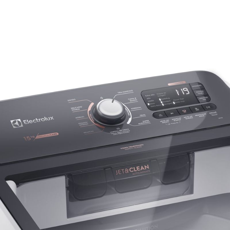 A Máquina de Lavar Premium Care LEC15 traz praticidade e otimização do seu tempo. Controle a duração do ciclo de lavagem e adapte-o se necessário através do novo painel digital com display Time Control que mostra em tempo real a duração dos programas. A exclusiva Tecnologia Jet&Clean¹ dilui até 100%² do sabão e do amaciante, deixando o dispenser limpo para o próximo ciclo e suas roupas livre de machas de sabão e sem a necessidade de relavagem. Essa ??máquina de lavar roupas conta com o exclusivo Ultra Filter Pega Fiapos, que retém até 8x mais³ fiapos que podem permanecer nas roupas após a lavagem. O sistema de lavagem Ciclo rápido otimiza automaticamente o tempo de duração de cada programa, cuidando melhor de suas roupas sem perder a qualidade e alta performance Electrolux. Aliada ao design sofisticado, a ??Lavadora de Roupas Premium Care tem alta capacidade, suficiente para lavar as roupas de toda sua família, e até mesmo edredom king size. Tenha mais praticidade e cuidado com suas roupas em seu dia a dia com os eletrodomésticos Electrolux. ¹Jet&Clean é a tecnologia exclusiva da Electrolux, que proporciona a limpeza da gaveta de sabão e amaciante através de jatos horizontais diretos na gaveta.²Teste comparativo interno realizado com a LT10B (sem Jet&Clean), verificando a distribuição dos insumos líquidos na carga de roupa mais próxima ao fundo do cesto, após o ciclo de lavagem, segundo testes internos da Electrolux. Área atingida pelos insumos líquidos de 99,99% e desvio padrão 0,01..³ O maior volume interno do filtro pode armazenar até 8 vezes mais fiapos. Este produto possui filtro com volume interno 8 vezes maior quando comparado ao volume interno do filtro do produto LT12F, segundo procedimento interno em laboratório da Electrolux.
