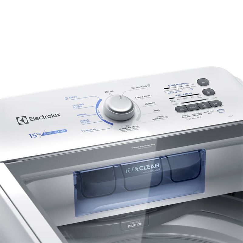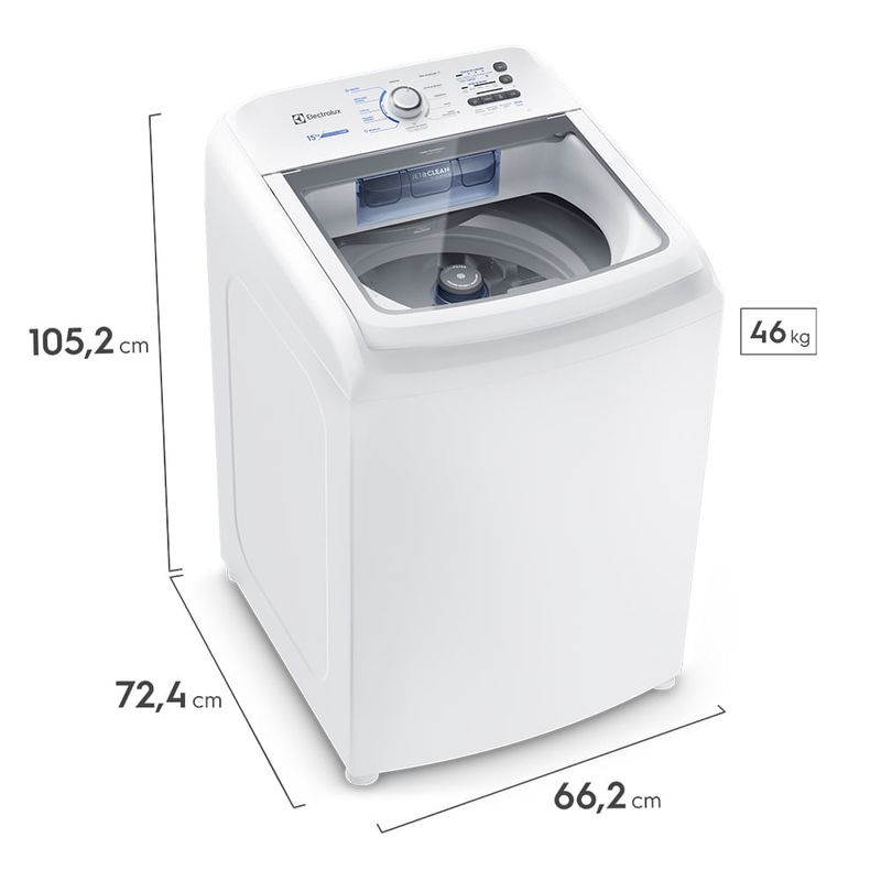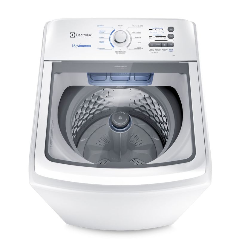 A Máquina de Lavar 15 kg Electrolux Essential Care (LED15) possui Cesto Inox, Dispenser Jet&Clean e sistema Ultra Filter para facilitar a sua rotina e proporcionar o melhor cuidado com as roupas.Conheça mais sobre Máquina de Lavar 15 kg Com alta capacidade, a lavadora contribui para que as suas peças durem ainda mais, além de contar com recursos que promovem comodidade, economia e sustentabilidade. Diferenciais da Máquina de Lavar 15 kg Electrolux A Máquina de Lavar Electrolux 15 kg apresenta recursos que facilitam a lavagem das roupas e promovem cuidado com as suas peças. Confira os principais diferenciais! Cesto inox: acumula menos resíduos de lavagens, mantendo a lavadora mais limpa e evitando manchas nas roupas, além de oferecer robustez e alta durabilidade; Programa Super Silencioso: sistema de lavagem que reduz o nível de ruído, o que permite lavar as roupas a qualquer horário, conforme a sua rotina; Função limpeza de cesto: faz a autolimpeza do cesto para evitar que resíduos das lavagens fiquem acumulados no compartimento; 11 programas de lavagem: programas que permitem lavar todos os tipos de roupa e sujeira, incluindo edredons king size e peças fabricadas em tecidos delicados; Função Avança Etapas: tecla que permite avançar a programação da máquina para usá-la conforme o seu tempo e necessidade; Programa rápido: indicado para roupas pouco sujas, promove lavagem eficiente em menos tempo; Função Turbo Agitação/Secagem: melhora o desempenho da lavagem e aumenta o tempo de centrifugação para que as roupas saiam menos úmidas da lavadora; Função Duplo Enxágue: promove dois enxágues para diminuir resíduos de sabão nas roupas;Classificação A: máquina de lavar com classificação A no selo Procel, do Inmetro, com alta eficiência energética. Tecnologias da Máquina de Lavar 15 kg A máquina de lavar roupa de 15 kg da Electrolux cuida das suas peças a partir de tecnologias como:Jet&Clean: usa fortes jatos de água para que o dispenser de sabão e amaciante esteja sempre limpo. Os jatos diluem 100% dos produtos, o que contribui para a limpeza, evita manchas e a necessidade de relavagens; Ciclos rápidos: otimizam o tempo dos programas automaticamente para deixá-los mais rápidos quando necessário, com mais cuidado e menos desgaste nas peças; Ultra Filter: sistema de filtragem de fiapos com capacidade de retenção 8 vezes maior, para você não se preocupar com fiapos e sujeiras presos às roupas após a lavagem; Função Reutilização de Água: permite reaproveitar a água da lavagem para outras tarefas, como lavar o chão. Principais dúvidas sobre Máquina de Lavar 15 kg Qual a melhor máquina de lavar 15 kg? A melhor máquina de lavar roupa 15 kg deve ser escolhida conforme as suas necessidades. Além de uma lavadora com alta capacidade, priorize modelos equipados com recursos que promovem o melhor cuidado com as roupas, além de funções que facilitam o seu dia a dia, como a Máquina de Lavar 15 kg Electrolux Essential Care. Qual é a máquina de lavar que consome menos energia? Ao escolher a sua máquina de lavar, consulte o selo Procel, do Inmetro, que classifica esses eletrodomésticos em relação ao consumo de água e energia. Todas as lavadoras Electrolux são classificadas na categoria A e estão entre as mais eficientes e econômicas. Quantos litros de água gasta uma máquina de lavar de 15 kg? O consumo de água das lavadoras depende do programa utilizado. A máquina de lavar 15 kg Electrolux, por exemplo, permite ajustar o nível de água conforme a quantidade de peças e permite, inclusive, reaproveitar a água da lavagem para outras tarefas. Quanto tempo demora o ciclo da máquina de lavar Electrolux 15 kg? A máquina de lavar Electrolux 15 kg oferece diferentes programas de lavagem, inclusive ciclos rápidos para otimizar o seu tempo. Além disso, você pode avançar as etapas conforme as suas necessidades. Qual é o tamanho de uma máquina de lavar 15 kg? O tamanho das lavadoras pode variar entre os modelos. A máquina de lavar Electrolux 15 kg, por exemplo, apresenta 105,2 cm de altura, 66,2 cm de largura e 72,4 cm de profundidade.