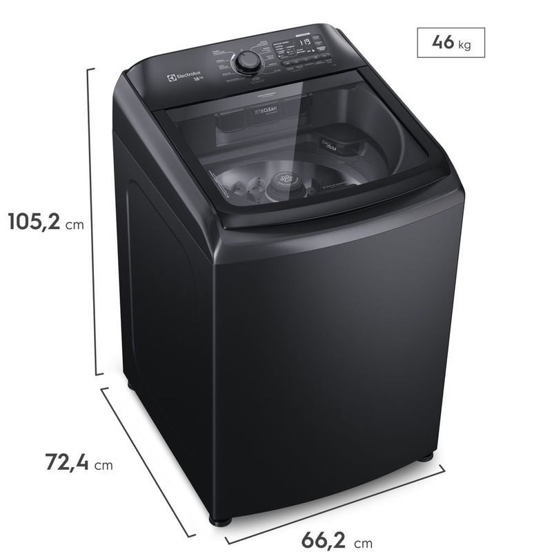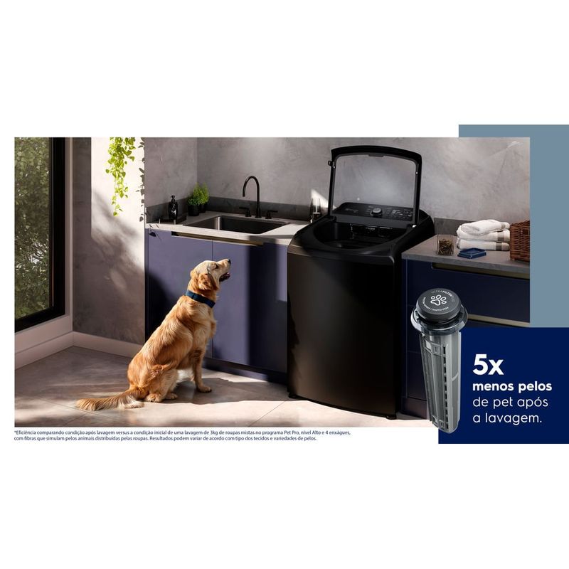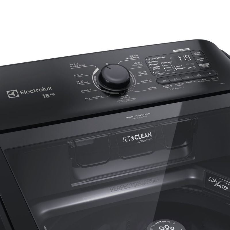 A Máquina de Lavar 18kg Electrolux Expert Preta com tripla filtragem e Jatos Poderosos (LEB18) é a primeira lavadora com abertura superior com tripla filtragem (filtra fiapos, pelos de pet e microplástico)A inovadora Tecnologia de Tripla Filtragem, um recurso exclusivo dessa máquina de lavar roupa, remove fiapos, pelos de pet e microplásticos durante o ciclo de lavagem. Para os donos de pets, o PET PRO é uma função que garante que os pelos dos animais sejam retidos no filtro, permitindo a lavagem eficaz de roupas e itens como mantas e cobertores. A exclusiva tecnologia dos jatos poderosos com o Dual Filter garante a redução de até 95% menos microplásticos gerados e descartados no meio ambiente a cada ciclo de lavagem. Os jatos poderosos ajudam a economizar até 72 litros de água por ciclo, além da redução de 8% no consumo de energia por ciclo, contribuindo para uma lavadora mais ecológica e econômica. Além disso, a lavagem por jatos poderosos lava sem agitação, cuidando das fibras com até 90% menos desgaste e até 50% menos desbotamento.A exclusiva tecnologia Jet&Clean da Electrolux possui jatos fortes de água no dispenser que diluem até 100%1 do sabão e amaciante, garantindo que, ao entrarem em contato com as roupas, evitem manchas e relavagens, penetrando de forma homogênea em todo o tecido. Além disso, mantém o dispenser limpo para a próxima lavagem Além de toda essa eficiência, a lavadora é equipada com recursos inteligentes que garantem economia de água e tempo. O Checkup Automático detecta possíveis falhas e informa no painel da máquina, evitando surpresas e facilitando a manutenção. O Nível de Roupa Inteligente ajusta automaticamente a quantidade de água de acordo com a carga de roupas, evitando desperdício e economizando até 35 litros de água por ciclo. Também possui o sistema de Lavagem Inteligente, que reduz o tempo dos programas quando possível, sem comprometer o desempenho da lavagem.Para roupas delicadas, como aquelas com rendas, adornos ou até mesmo trajes de festa, a lavadora Electrolux oferece o Programa Extra Delicado, desenvolvido especialmente para cuidar de mais tecidos frágeis, usando jatos de água que circulam suavemente sobre a roupa. Com uma capacidade de 18 kg e um design moderno, a máquina de lavar roupa Electrolux proporciona praticidade e conforto no dia a dia. Permitindo lavar grandes volumes de roupas, como edredons king size, sem precisar fazer vários ciclos. Outro diferencial é a Função Reutilizar Água, que permite aproveitar a água drenada após a lavagem para outras finalidades, como lavar o piso ou os panos de chão. Isso contribui para um uso mais racional dos recursos e ajuda a reduzir o impacto ambiental da lavagem.A Máquina de Lavar 18kg Electrolux Expert Preta com tripla filtragem e Jatos Poderosos (LEB18) proporciona uma experiência completa e de alta performance para o seu dia a dia.É recomendado o uso de acessórios originais Electrolux.