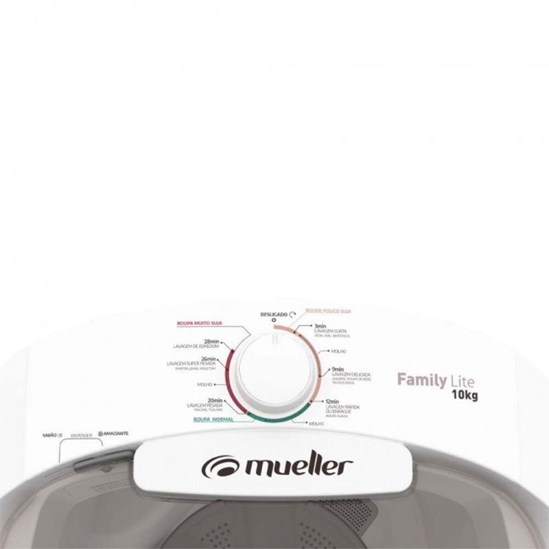 Máquina De Lavar Mueller 10kg Family Lite Branco 220vMáquina de Lavar Mueller 10Kg Family Lite.Características:Capacidade para 10kgLava edredom de casalSistema family filterRoupas limpas e sem fiaposProgramas com indicção de tempo de lavagem5 programas para melhor lavagemTurbilhonamento lava com eficienciaTampa transparentePeneira para pequenos objetosPotencia 380w EM 127 VPotencia em 220 v 395wCapacidade de água 96 litrosConsumo de energia 0,07kwh/cicloDimensões:Altura: 96 cmLargura: 54,5 cmProfundidade: 54,5 cmPeso: 11 kgGarantia do fornecedor de 12 meses.