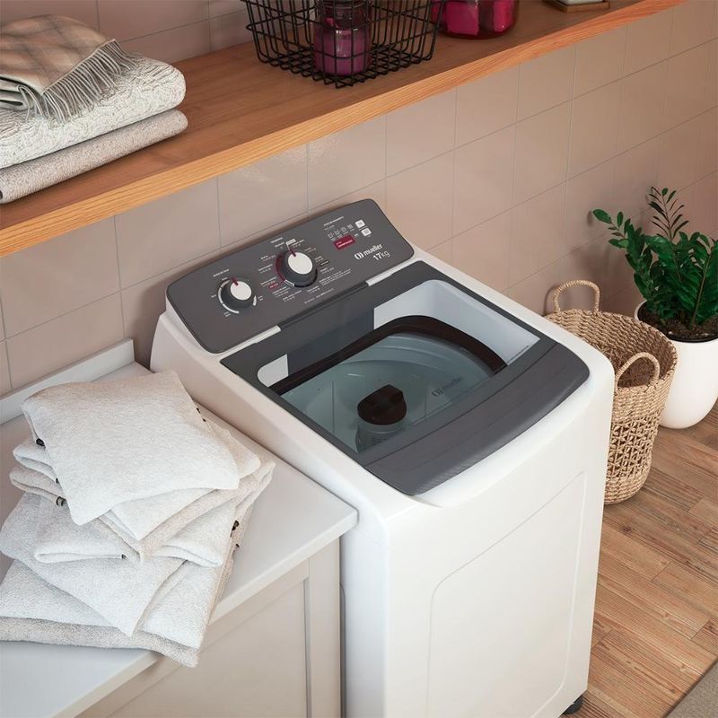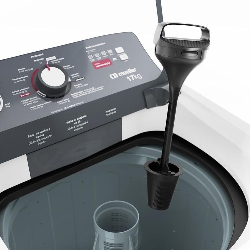 Máquina De Lavar Mueller 17kg Com Ultracentrifugação E Ciclo Rápido MLA17 110V BrancoSaia do automático com a nova Lavadora Automática Mueller!Com alta capacidade e robustez, combinando eficiência de lavagem e o poder da dupla centrifugação, a Lavadora Automática Mueller 17kg foi projetada para garantir durabilidade e praticidade. Uma verdadeira experiência de cuidado com as roupas.O modelo possui 11 programas de lavagem, com 5 níveis de água, além de funções como a Ultracentrifugação e programas de duplo enxágue para lavagem de edredom e cama/banho.Conheça mais detalhesFunção Ultracentrifugação: Suas roupas saem da lavagem praticamente secas.11 Programas de Lavagem: Incluindo ciclo de lavagem rápida, com roupas limpas em até 27 minutos.Triplo Dispenser: Praticidade na medida certa para sabão em pó ou sabão líquido, amaciante e alvejante.5 Níveis de Água: Garanta eficiência máxima no consumo.Filtro de Fiapos Desmontável: Fácil de limpar e desmontar.Botão Avança Etapas: Flexibilidade de personalizar o ciclo de lavagem conforme suas necessidades.Painel Ergonômico: Mais intuitivo e prático de usar, com o maior botão da categoria emborrachado.Lavagem Econômica e Sustentável: Eficiência Global “A” e ciclo de reaproveitamento de água, garantindo economia e sustentabilidade no dia a dia.FuncionalidadesAutoaquecimento da Água: NãoCesto Removível: NãoCentrifugação: 630 rpmSistema de Lavagem: AgitaçãoNúmero de Programas: 11Níveis de Água: 5Enxágue: AutomáticoEnxágue Extra: NãoEsfregador: NãoFiltro para Fiapos: No agitadorFunção Apenas Centrifugar: SimEntrada de Água: AutomáticaSaída de Água: Automática – com sistema de reaproveitamento de águaEngates para Mangueira: SimMangueira de Entrada de Água: SimLava Edredom: Casal SoftEspecificações TécnicasMarca: MuellerModelo: Lavadora 17Kg MLA17Tipo: Lavadora AutomáticaAbertura: SuperiorTipo de Alimentação: ElétricoVoltagem: 127VCapacidade: 17 kgCapacidade de Lavagem: 17 kgCapacidade de Secagem: 0 kgCapacidade de Água na Cuba – Nível Máximo: 136 LConsumo de Energia – Ciclo Normal Água Fria: 0,43 kW/hConsumo de Água por Ciclo: 200 litrosPotência 127V: 850 wattsPotência 220V: 750 wattsClassificação de Eficiência Energética: AEficiência de Lavagem: 0,88Gabinete: MetalGabinete (descrição adicional): Plástico especialGrade de Proteção no Motor: SimMotor com Protetor Térmico: SimPés: ReguláveisDesmontável: NãoAltura: 106 cmLargura: 67,5 cmProfundidade: 73,5 cmPeso: 39,3 kgGarantia: 12 MesesImportanteCertifique-se de selecionar a voltagem compatível com as tomadas da sua residência. Caso a voltagem escolhida na finalização do pedido esteja incorreta, o produto não funcionará.A mangueira de saída d’água deve ser instalada diretamente em um cano de escoamento (mínimo 1¼ de polegada) ou utilizar a curva plástica que acompanha a lavadora para acoplá-la em um tanque. A altura deverá ficar entre 80 cm e 110 cm do chão para que o escoamento e enchimento da lavadora funcionem corretamente.