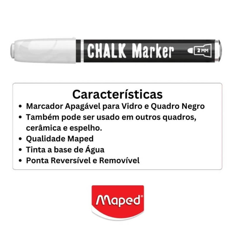 Marcador Apagável Multissuperfície Giz Líquido Branco - Maped O Marcador Multissuperfície Apagável Marker Peps Giz Líquido é a escolha ideal para professores, estudantes, artistas e profissionais que precisam de um marcador confiável e de alta qualidade. Experimente você mesmo e veja a diferença! O Marcador Multissuperfície Apagável Marker Peps Giz Líquido, a solução perfeita para todas as suas necessidades de escrita e desenho. Este é o único marcador que você precisará, seja para quadros tradicionais, quadros em branco, preto, vidro, espelhos ou cerâmica. Com sua tinta à base de água, este marcador oferece uma aplicação suave e vibrante que pode ser facilmente apagada com um pano úmido, isso significa que você pode reutilizar suas superfícies repetidamente sem deixar marcas ou resíduos. Além disso, a ponta do marcador é removível, reversível e lavável com água morna se secar, isso garante que seu marcador tenha uma vida útil longa e continue a fornecer a mesma qualidade de escrita ao longo do tempo. Características:- Modelo: Chalk Marker- Ponta: 2 mm- Tinta à base de água- Apagável com um pano úmido Embalagem com 01 unidadeImagens meramente ilustrativas, as cores podem variar em cada tela ou monitor.