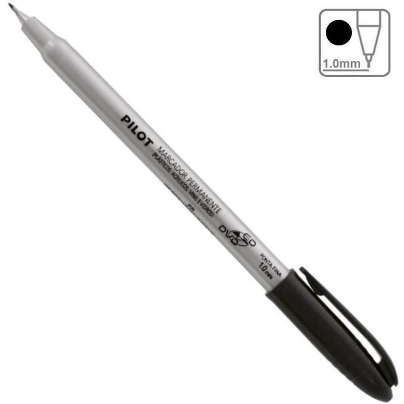 Marcador Permanente 1.0mm Ponta Fina Preto - Pilot O Marcador para CD/DVD da Pilot foi desenvolvido com tinta especial resistente à água.- ponta fina 1.0mm resistente de poliéster com protetor de metal.- tinta à base de álcool.- espessura de escrita 0,5mm.- ideal para cd, dvd, plásticos, vinil, acrílicos, vidros e filmes.- tinta resistente à água - corpo redondo Embalagem com 01 unidade Imagens meramente ilustrativas, as cores podem variar em cada tela ou monitor.