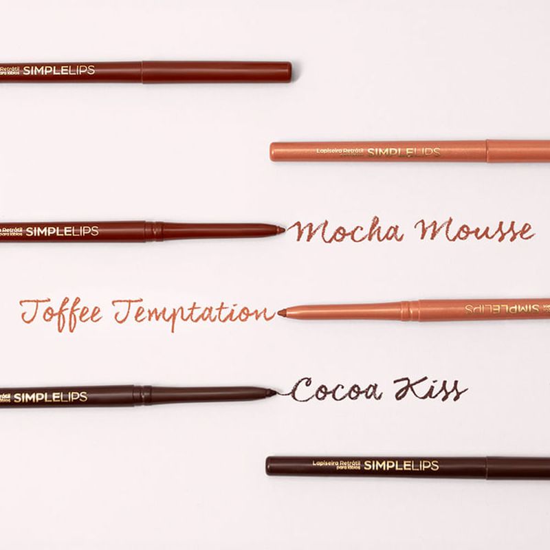 Mari Maria Simple Lips Toffee Tempt é uma lapiseira labial desenvolvida para definir, contornar e realcar os labios com acabamento elegante, cor intensa e aplicacao precisa. Sua textura cremosa desliza suavemente sobre a pele, permitindo traços firmes e uniformes sem repuxar, proporcionando conforto durante todo o uso e resultado profissional desde a primeira passada. A tonalidade Toffee Tempt apresenta um tom quente e sofisticado, ideal para compor maquiagens naturais, classicas ou producoes mais marcantes com equilibrio e harmonia. Perfeita para o dia a dia ou ocasiões especiais, esta lapiseira auxilia a prolongar a durabilidade do batom, valoriza o desenho da boca e oferece acabamento polido, elevando a maquiagem com praticidade, performance e estilo. Caracteristicas: Marca: Mari Maria Linha: Simple Lips Categoria: Lapiseira Labial Versao: Toffee Tempt Beneficios: definicao precisa, cor intensa, textura cremosa e conforto prolongado Ingredientes Principais: pigmentos micronizados, ceras condicionantes e agentes emolientes Modo de Aplicacao: Contorne os labios seguindo o formato natural da boca e, se desejar, preencha toda a superficie antes da aplicacao do batom ou gloss para intensificar a cor e prolongar a durabilidade. Especificacoes do Produto: Tipo de Produto: lapiseira labial Volume: nao informado pelo fabricante Textura: cremosa Ativos Principais: pigmentos micronizados e ceras emolientes Beneficios do Produto: Eficacia: define e realca os labios com acabamento uniforme e sofisticado. Durabilidade: ajuda a prolongar a fixacao do batom ao longo do dia. Versatilidade: indicada para maquiagens suaves ou producoes intensas. Design ou Praticidade: formato pratico que facilita o transporte e a reaplicacao. Mari Maria Simple Lips Toffee Tempt e ideal para quem deseja labios bem desenhados, cor elegante e acabamento profissional, valorizando a maquiagem com conforto, precisao e resultado impecavel em qualquer ocasiao.