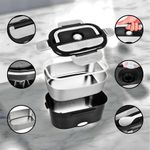 Marmita Elétrica Portátil Bivolt - PretoA Marmita Elétrica é uma solução ideal para quem precisa de uma refeição quente e saudável em qualquer lugar. Com um design compacto e eficiente, ela permite o transporte e o aquecimento de alimentos com facilidade, mantendo sabor e nutrientes intactos, para uma alimentação prática e econômica.Principais Características e Benefícios:- Aquecimento Rápido: A marmita elétrica aquece os alimentos em poucos minutos, proporcionando uma refeição quente e pronta de maneira rápida e conveniente.- Portabilidade: Compacta e fácil de transportar, ela pode ser levada para o trabalho, escola ou qualquer outro lugar com acesso a uma tomada elétrica, facilitando a alimentação fora de casa.- Economia e Sustentabilidade: Ideal para quem deseja economizar ao evitar a compra de alimentos prontos. Também contribui para uma alimentação mais saudável, com refeições caseiras preparadas com mais controle.- Conservação do Sabor e Nutrientes: Ao manter os alimentos aquecidos, a marmita elétrica preserva o sabor e os nutrientes, garantindo uma refeição de qualidade, mesmo após algum tempo.- Facilidade de Uso e Limpeza: A marmita elétrica é fácil de operar e limpar. O compartimento externo de plástico transparente é removível, tornando a limpeza simples, enquanto a parte interna de alumínio deve ser mantida seca e livre de contato com água para garantir a durabilidade do produto.- Versatilidade: Pode ser usada para aquecer diversos tipos de alimentos, como sopas, arroz, massas, ensopados e legumes, adaptando-se às suas necessidades alimentares.- Design Funcional: A marmita é equipada com 2 compartimentos moveis de plástico transparente para separar diferentes tipos de alimentos, além de uma tampa com 4 travas para garantir que a tampa fique bem fixa e o calor seja mantido.- Opção Mais Saudável: Ajuda a evitar a compra de refeições processadas e pouco saudáveis, incentivando a preparação de alimentos frescos e nutritivos em casa.Especificações Técnicas:- Material: Plástico resistente e alumínio, com boa resistência a altas temperaturas.- Potência: 40W, para aquecimento eficiente e rápido.- Voltagem: Bivolt, podendo ser utilizada em qualquer tomada disponível.Componentes Inclusos:- 1 Marmita Elétrica com divisórias de plástico transparente- 2 Cabo de Alimentação (um para pugs universal e outra para entrada de carro)- 1 Colher de Plástico Pequena- 1 Manual de InstruçõesCuidados Importantes: A bacia externa é removível e pode ser lavada normalmente. Evite molhar a parte interna em alumínio e não submeta à água quente ou banho-maria, para não danificar a parte elétrica.A Marmita Elétrica é uma excelente opção para quem deseja praticidade, alimentação saudável e economia, seja no trabalho, em casa ou em qualquer outro local. Ideal para quem busca manter a qualidade e o sabor dos alimentos sem perder tempo.Alguns produtos podem apresentar variações na tonalidade da cor, detalhes e características menores, mas isso não afeta a funcionalidade ou a troca do item.