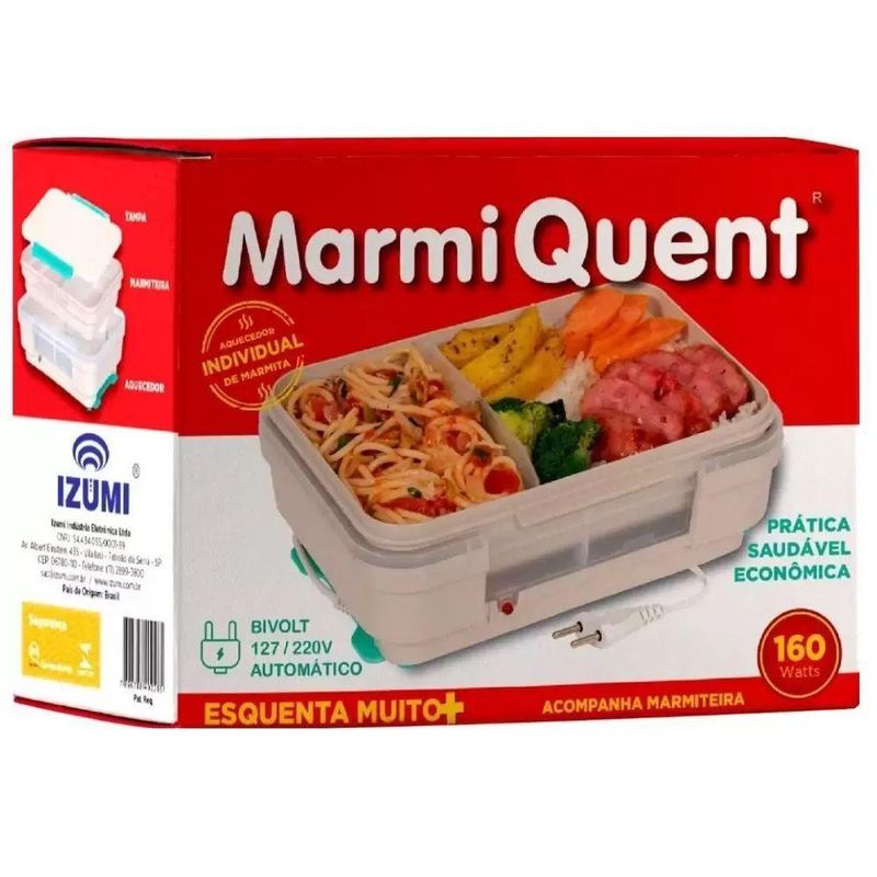 Marmi Quent foi projetada para seu conforto, solucionando o problema de aquecimento individual de marmita no seu ambiente de trabalho. Utiliza o sistema de aquecimento à vapor, onde o sabor, textura e a qualidade dos alimentos são preservados, proporcionando uma refeição mais saudável e sem riscos à sua saúde. Características: • Marca: Rusithy • Potência Nominal: 185 watts • Material: Polipropileno • Livre de Bisfenol e Livre de Odor • Voltage: Bivolt • Capacidade da marmiteira: 1,2 Litros Garantia: • Garantia do Fornecedor: 3 meses contra defeitos de fabricação Itens inclusos: • 01 Marmita com divisória • 01 Base aquecedora Peso e Dimensões Aproximadas do produto na embalagem: • Largura: 22 cm. Altura: 18 cm. Profundidade: 11 cm. • Peso: 594 g As cores podem variar entre as imagens mostradas acima e o produto. Imagens meramente ilustrativas.