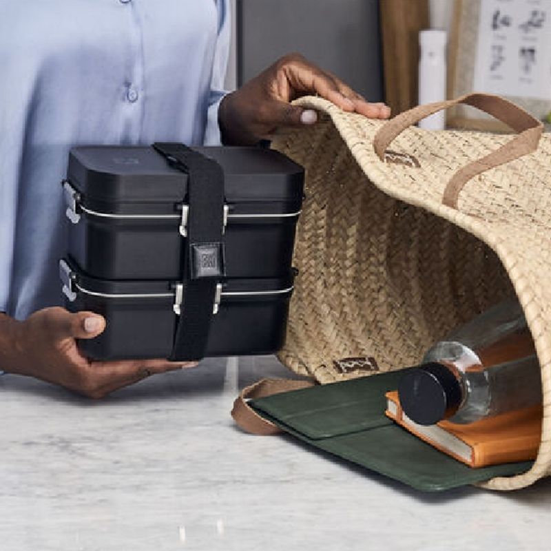 A marmita ZWILLING FRESH & SAVE Lunchbox To Go combina a praticidade de uma lancheira tradicional com a tecnologia de vácuo ZWILLING, oferecendo mais frescor, flexibilidade e organização para refeições fora de casa. Seu sistema modular permite transportar diferentes alimentos ao mesmo tempo sem que se misturem, mantendo sabor, aroma e textura por muito mais tempo. - Destaques• Sistema modular com caixas, divisórias e recipientes para molhos• Tecnologia de vácuo que mantém os alimentos frescos por até 5 vezes mais tempo*• Inclui talheres em aço inox (faca, garfo e colher)• Material leve, resistente a impactos e livre de BPA• Pode ir à lava-louças e ao micro-ondas (sem tampa e clipes metálicos)• Faixa elástica inclusa para fechamento seguro mesmo sem vácuo - Especificações• Cor: preto• Material: plástico PP (recipientes e tampa), silicone (válvula e vedação), aço inox 18/10 (clipes e talheres)• Resistência ao calor: 97 °C• Resistência ao frio: -20 °C• Com tampa: sim• Pode ir à lava-louças: sim• apacidade total: 1,6 l• Peso líquido: 1,025 kg• Altura: 16,5 cm• Largura: 12,3 cm• Comprimento: 20,7 cm - Observações• Compatível com todas as bombas e tampas ZWILLING FRESH & SAVE• Micro-ondas somente sem tampa e sem clipes metálicos• Ideal para refeições preparadas, transporte diário e alimentação fora de casa