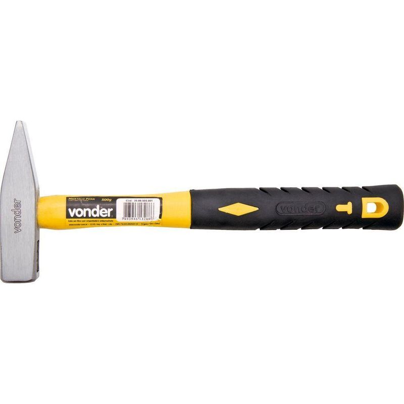 Martelo Pena 1000g Aço Forjado Cabo Fibra Emborrachado - VonConteúdo da embalagem1 MarteloAplicações e dicas de usoIndicado para uso geral em funilarias, oficinas mecânicas e na indústria metal-mecânicaDestaques e diferenciaisProduzido em aço forjado, proporcionando maior resistência e durabilidade. Possui cabo em fibra com empunhadura em borracha termoplástica conferindo maior conforto no manuseio.DETALHES TÉCNICOSPeso do martelo:1000 gComprimento total aproximado do martelo (cabeça + cabo):350,0 mmMaterial do cabo do martelo:FibraMaterial da cabeça do martelo:Aço forjadoAcabamento da cabeça do martelo:Polido Produto: Martelo | É Kit de Fábrica: Não