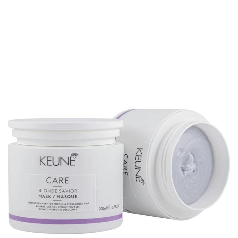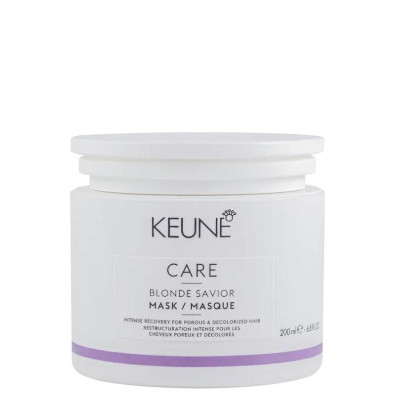 Máscara Care Blonde Savior Keune 200mlA Máscara Blonde Savior faz parte da linha de tratamento Blonde Savior, desenvolvida especialmente para cabelos sensibilizados, danificados e descoloridos. Assim como nos demais produtos da linha, a máscara conta com Ácido Glicólico e Creatina como ingredientes principais. Enquanto o ácido glicólico atrai água para o fio, mantendo-o hidratado, a Creatina fortalece as ligações dentro do fio de cabelo, recuperando sua saúde e força.Além destes dois ingredientes, a fórmula também conta com Mirasil, um polímero condicionante patenteado, que deixa o cabelo macio e sedoso, e Keravis, um complexo proteico à base de plantas, que fortalece os fios danificados. Dessa forma, a máscara recupera os fios desde o córtex interno, diminuindo as quebras e conferindo hidratação imediata, deixando o cabelo saudável e brilhoso.Modo de usar:Após usar o Shampoo Care Blonde Savior, seque o cabelo com a toalha e aplique a máscara. Deixe agir de 3 a 5 minutos e enxágue.Nossos Experts EnsinamPara potencializar a ação da máscara, retire o excesso de água do cabelo com uma toalha, sem esfregar, apertando suavemente os fios. Desembarace os fios com um pente largo. Aplique a máscara e deixe agir pelo tempo indicado.