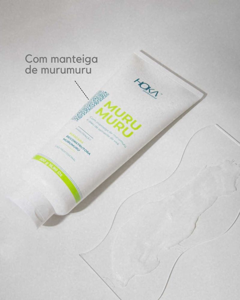 MÁSCARA CAPILAR MURUMURU HOKA CONTÉM: 1un (frasco) Máscara de Reconstrução capilar Murumuru 500gA Máscara Reconstrutora Murumuru é extremamente nutritiva, promove reconstrução em fios quebradiços e possibilita a recuperação da umidade e elasticidade do cabelo.TECNOLOGIA Contém poderosa manteiga que possui dupla ação: preencher as fissuras e alinhar as cutículas, devolvendo aos fios a elasticidade natural e garantindo um efeito anti frizz. A manteiga de murumuru ajuda a controlar o volume do cabelo, tornando-o mais fácil de modelar, além de promover a reconstrução dos fios. O óleo de semente de uva é considerado um remédio natural para ajudar no crescimento dos fios. A vitamina A atua no fortalecimento e contribui para deixar os cabelos com mais brilho e fortes. INDICAÇÃO Sua textura não gordurosa permite uma rápida absorção pelos fios e pode ser usada em qualquer tipo de cabelo, inclusive cabelos secos, crespos, danificados por químicas, quebradiços ou com pontas duplas.BENEFÍCIOS Controla o volume; Promove reconstrução; Ajuda no crescimento; Proporciona força, maciez e brilho; Recupera a umidade e elasticidade; Evita a quebra; Propriedades antioxidantes; É extremamente nutritivo.MODO DE USAR: Aplique nos fios lavados e úmidos e deixe agir de 10 a 25 minutos; Enxágue bem. #Dica 1: Para melhores resultados, limpe os fios com o Shampoo Murumuru, antes de aplicar a máscara e, depois, sele a cutícula com o Condicionador Murumuru. #Dica2: Utlize o finalizador da linha Refine com proteção térmica para um resultado impecável.