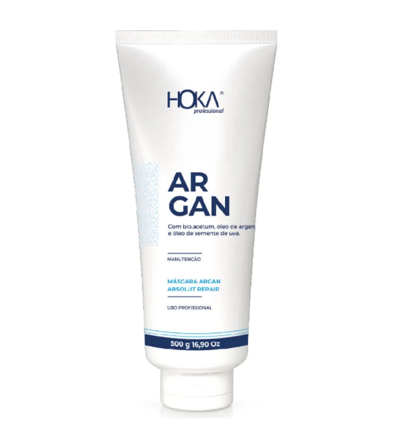MÁSCARA ARGAN ABSOLUT REPAIR HOKA CONTÉM: 1un (frasco) Máscara de Argan Reparação absoluta 500g A Máscara Argan Absolut Repair repara profundamente a fibra capilar e promove reposição das proteínas com hidratação intensa. Enriquecida com óleo de Argan que melhora a elasticidade e estimula ao crescimento. Como não é gorduroso, o óleo de argan proporciona um aspecto saudável aos fios, com maciez e brilho. Além disso, possui o bio acetum (vinagre obtido da fermentação da maçã), que possui ação reparadora através de aminoácidos. INDICAÇÃO: Todo tipo de cabelo, principalmente opaco, poroso, desidratado, sensibilizado e agredido por procedimentos químicos.BENEFÍCIOS: Hidratação intensa Combate a queda de cabelo Melhora a elasticidade do fio Antioxidante Fios macios e com brilho Fator condicionante Anticaspa Regula o PHMODO DE USAR: Passo 1: aplique nos fios lavados e úmidos; Passo 2: deixe agir de 10 a 25 minutos; Passo 3: enxágue bem. #Dica 1: Para melhores resultados, utilize os outros produtos da linha Argan Absolut Repair. #Dica 2: retire o excesso de água com uma toalha antes de aplicar o produto. #Dica 3: acrescente Óleo de Argan na Máscara quando for fazer o tratamento em cabelo mais ressecado para potencializar o efeito.