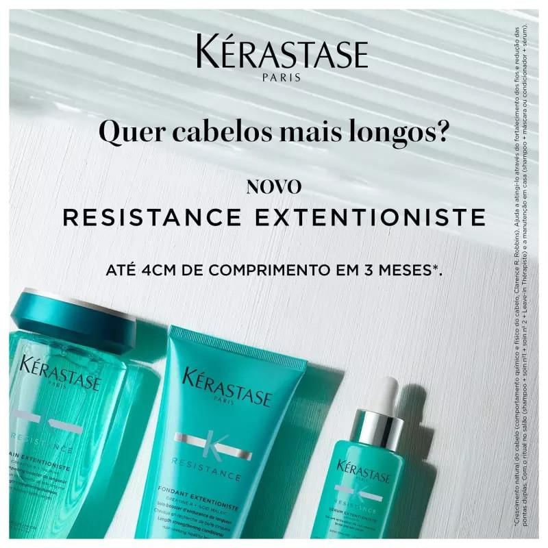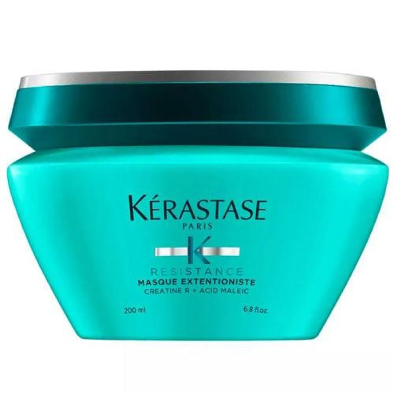 Mascara Resistance Extentioniste Kerastase 200ml Na busca por cabelos mais longos, Kérastase oferece um cuidado excepcional com suprema vantagem. Resistance Extentioniste é a nova linha de Kérastase para cuidados com os cabelos longos, formulada especificamente para reforçar a saúde e a beleza dos fios.Porque quando as mulheres falam sobre cabelos longos – nos salões, nas redes sociais e entre amigas – elas compartilham dois desejos em comum: cabelos mais bonitos e longos.Máscara de Tratamento Masque Extentioniste para fortalecimento do comprimento dos fios e das pontas. Incrível poder de homogeneidade da fibra, até mesmo nas pontas enfraquecidas.Ativos:Creatine R™ + Ácido Maleico -- penetram na fibra para conferir maior resistência à fibra capilar, além de selar as cutículas, conferindo um revestimento uniforme das raízes às pontas.Indicado:Para todos os tipos de cabelo.Modo de usar:- Retire o excesso de água após lavar os cabelos com o Bain Extentioniste.- Use aproximadamente 15 a 30 ml da máscara, dependendo do comprimento dos cabelos.- Aplique a máscara no comprimento e nas pontas, mecha por mecha.- Comece a aplicação pelas pontas e suba em direção às raízes evitando tocar o couro cabeludo.- Massageie e torça as mechas dos cabelos levemente, permitindo uma perfeita penetração do produto.- Deixe pausar nos cabelos por 5 minutos.- Enxágue abundantemente.Especificações:Tipos de cabelos: DanificadosNecessidade: Força e reconstruçãoPúblico: TodosTamanho: PadrãoLinha: Resistance