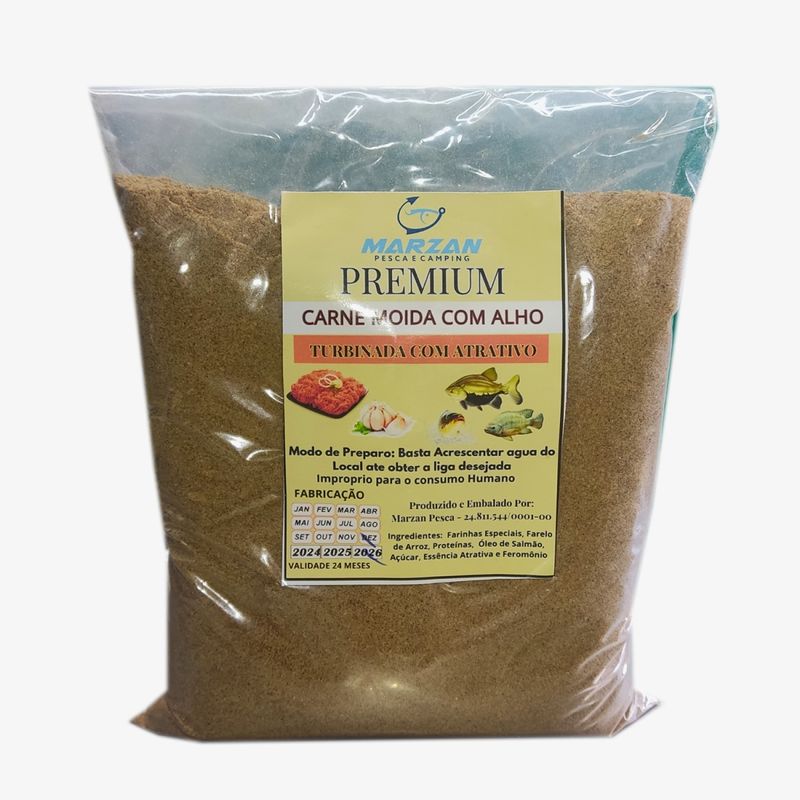 Massa Premium Marzan Pesca Massa Premium Especial - Sabor Carne Moida com Alho A massa Carne Moida com Alho, com sabor e cheiro intensos atraem os peixes a distancia, e uma mistura de sabores que os peixes adoram e que sempre dão excelentes resultados nas pescarias. Massa Premium produzida com produtos especialmente selecionados para que voce tenha o melhor resultado em sua pescaria, super atrativa com componentes super balanceados, uma mistura construida para ter resultados. Sabor:Carne Moida com Alho composição: Farinhas Especiais, Farelo de Arroz, Proteínas, Óleo de Salmão, Açúcar, Essência Atrativa e Feromônio Pacote com 500 gr. improprio para consumo humano modo preparo Misture aos poucos agua do local ate dar a liga desejada.