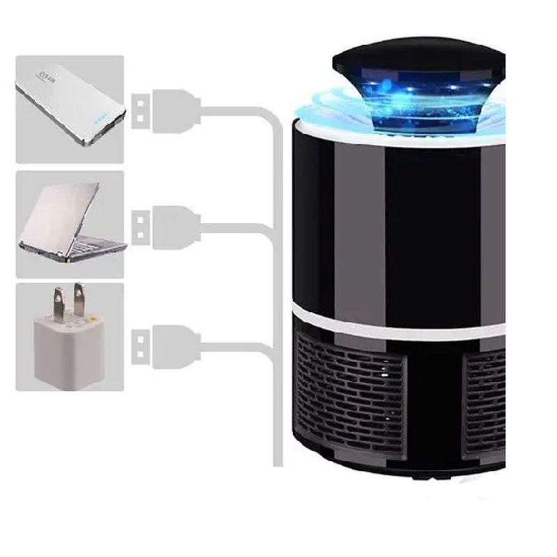 Mata Mosquito Armadilha Lâmpada Led Uv Descrição Projetado para ser ligado em seu quarto ao anoitecer, por volta de 3 horas antes de dormir. Ele usa uma luz especial Ultra Violeta para atrair o mosquito e um Ventilador / Fan que o “suga” para dentro do dispositivo ao chegar perto, onde ele morre por desidratação.COBERTURA DE 360°: Ele possui 4 LEDs UV que ilumina em 360°, atraindo os mosquitos de todos os cantos do ambiente.COR VIOLETA: Seu LED envia uma onda de luz violeta/neon de 365nm, projetada para aumentar a atratividade aos mosquitos.COOLER: Possui um ventilador embutido que faz a sucção dos mosquitos em 360° para dentro da armadilha, onde morrem por desidratação.ALIMENTAÇÃO VIA USB: Poderá liga-lo diretamente em uma porta USB de seu computador oupower bank (Bateria Portátil). Não Acompanha Adaptador para tomadas.BAIXO NÍVEL DE RUÍDO: O Mata Mosquito possui a tecnologiadenoise, que reduz os ruídos da ventoinha do produto a apenas 35dB (uma fala normal alcança 60dB).FÁCIL DE LIMPAR: Basta girar a parte de baixo para abrir o mata mosquito e fazer a limpeza do reservatório da forma que preferir.BEBÊS E CRIANÇAS: Seu som baixo e contínuo ajuda a prolongar o sono dos bebês e crianças pequenas, assim como o som contínuo de um ar condicionado ajuda muitos adultos.SEM CHEIRO: Ao contrário dos mata mosquitos elétricos que ao grudar ficam “fritando” e soltando cheiro de queimado, este não solta nenhum cheiro!EFEITO REDEMOINHO: Possui uma passagem com efeito redemoinho para o mosquito ser sugado para dentro do aparelho.DICAS DE UTILIZAÇÃOPara obter o melhor resultado na captura dos mosquitos, deixe o Mata Mosquito ligado continuamente por mais de 12 horas durante o primeiro uso.Desligue todas as luzes e deixe o quarto bem escuro, assim sua luz violeta irá atrair mais mosquitos.Feche as portas e janelas e ligue o Mata Mosquito cerca de 3 horas antes de ir dormir para melhores resultados.Limpe o reservatório de mosquitos semanalmente (áreas rurais, com mais mosquitos) ou mensalmente (áreas urbanas, menos mosquitos).Posicione o Mata Mosquito pelo menos 1 metro acima do nível do chão.Esse dispositivo mata os mosquitos através de desidratação, processo que não é imediato.Como seu consumo é muito baixo, recomenda-se deixa-lo ligado pelo menos 12 horas, ou seja, ligar ao anoitecer e desligar pelas 10h da manhã.Características técnicasTensão de operação: 5VPotência: 5WMaterial da carcaça: PlásticoComprimento do cabo USB: 65cmPeso do produto: 350gAltura: 22cmDiâmetro: 12,5cmAbertura do ventilador: 8cmEmbalagem: 24x14x14 cmConteúdo da embalagem01 Armadilha Mata Mosquito