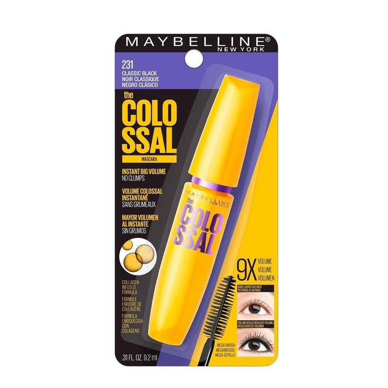 Maybelline New York 231 - Mascara De Cílios - 9.2mlO Maybelline New York Volum' Express The Colossal Washable Mascara, Classic Black 231 é uma máscara de cílios icônica da linha Volum' Express, conhecida por proporcionar volume instantâneo até 9 vezes maior em uma única aplicação, sem formar grumos. A tonalidade Classic Black 231 oferece um preto clássico e saturado, ideal para looks naturais ou dramáticos. Sua fórmula lavável é enriquecida com 2x mais colágeno e fibras de pro-queratina, garantindo volume intenso e cílios mais espessos. O aplicador Mega Brush, com design amplificador, cobre cada cílio da raiz às pontas, proporcionando definição e volume sem esforço. Testada por oftalmologistas, é segura para olhos sensíveis e usuários de lentes de contato. Fácil de remover, é perfeita para uso diário ou ocasiões especiais, com uma embalagem amarela icônica que se destaca no nécessaire.Características:Marca: Maybelline New YorkLinha: Volum' Express The ColossalCategoria: Máscara de Cílios LavávelVersão: Classic Black 231 (preto clássico)Benefícios:Volume até 9x maior em uma única aplicação, sem grumosFórmula com 2x mais colágeno e fibras de pro-queratina para cílios mais espessosAplicador Mega Brush cobre e amplifica cada cílioTestada por oftalmologistas, segura para olhos sensíveis e lentes de contatoLonga duração (8-12 horas, dependendo das condições)Fácil de remover com demaquilanteModo de Aplicação:Curve os cílios com um curvador (ex.: Maybelline Eyelash Curler) para maior efeito.Aplique a máscara com o Mega Brush, varrendo da raiz às pontas dos cílios em movimentos ascendentes.Não deixe a máscara secar entre camadas para evitar grumos; aplique camadas adicionais para intensificar o volume.Remova com um demaquilante (ex.: Maybelline Expert Eyes 100% Oil-Free Makeup Remover).Observação: Não aplique em olhos irritados ou infectados. Em caso de irritação, suspenda o uso e consulte um médico. Reserve o produto para uso pessoal e trate o aplicador com cuidado higiênico. Armazene em local fresco, seco e longe da luz solar direta. Mantenha fora do alcance de crianças.Benefícios do Produto:Eficácia: Proporciona volume instantâneo até 9x maior, com cílios definidos e sem grumos.Durabilidade: 9.2ml rende múltiplas aplicações, com fixação de 8-12 horas.Versatilidade: Ideal para looks naturais ou dramáticos, adaptável a todos os tons de pele.Design ou Praticidade: Mega Brush facilita a aplicação precisa, e a embalagem amarela é prática para transporte.O Maybelline Volum' Express The Colossal Washable Mascara Classic Black 231 é ideal para quem deseja cílios volumosos e definidos com um preto clássico intenso. Sua fórmula com colágeno e o Mega Brush garantem até 9x mais volume sem grumos, sendo fácil de aplicar e remover.
