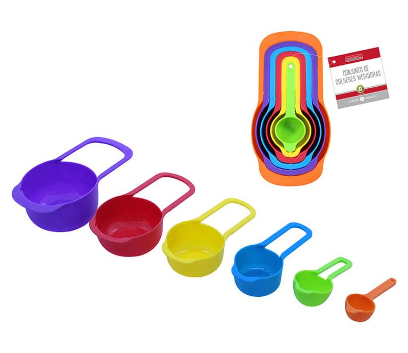 CONJUNTO DE COLHERES MEDIDORAS 6 PEÇAS - Dimensões da Peça: - 1 Colher: 9,8 x 3,3 x 1,9cm - 1 Colher: 11 x 4,4 x 2,5cm - 1 Colher: 12 x 5,4 x 3,3cm - 1 Colher: 13,2 x 6,6 x 3,5cm - 1 Colher: 14,4 x 7,8 x 4cm - 1 Colher: 16,7 x 8,8 x 5,5cm Dimensões da Embalagem: 16,7 x 8,8 x 5,5cm - Quantidade Inner: 48 Peças - Dimensões Inner: 34 x 21 x 39cm - Quantidade Master: 144 Peças - Dimensões Master: 65,5 x 37,5 x 40,5cm - Material: Plástico - Cor: Roxo, Vermelho, Amarelo, Azul, Verde, Laranja - Tipo de Embalagem: Tag com saco plástico - Marca: Haüskraft - Origem: China - Capacidades: - 1 Colher: 7,5ml, - 1 Colher: 15ml, - 1 Colher: 60ml, - 1 Colher: 85ml, - 1 Colher: 125ml, - 1 Colher: 250ml, - Espessura: 1,5mm - Contém: 6 unidades. - - - Email: sac@Garantia do produto: 90 dias de garantia de acordo com o Código de Defesa do Consumidor + a Garantia do Fabricante
