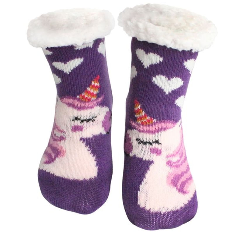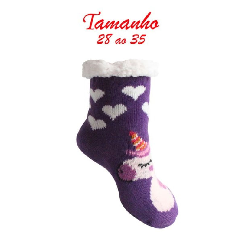 Meia Infantil Peluciada Antiderrapante Roxa Unicórnio 28 ao 35 - Perfeitas para garantir um inverno quentinho e aconchegante. Com seu interior peluciado e solado antiderrapante, garantem conforto e proteção. Material: 100% Acrílico - Tamanho 28 ao 35 CONTÉM 1 PAR Características Gerais do Produto: • Modelo: Pantufa Meia Infantil Peluciada Garantia: • Garantia do site - 1 Mês