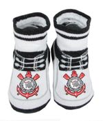Meia Tênis Bebê Corinthians Revedor A meia do Corinthians é oficial, fabricada em malha antialérgica, possui elasticidade da sola de até 9 centímetros e ainda vem com o escudo do time na parte frontal da meia. O pezinho de seu bebê estará protegido e o papai vai ficar cheio de orgulho! Tamanho: Único 0-3 Meses Detalhes: Tecido: 63% Algodão, 30% Poliamida, 5% Elastano e 2% Elastodieno Produto Oficial Licenciado.