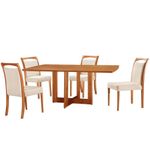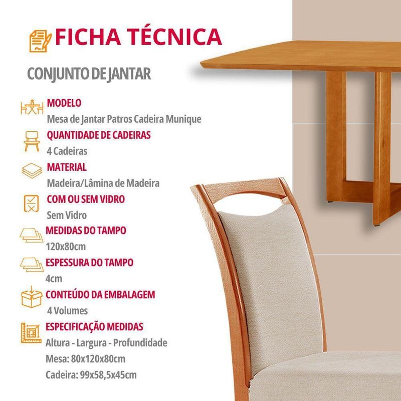 Mesa 120cm Laminado Barril Com 4 Cadeiras Moderna Mobilia Linho Off White Imbuia NaturalePatros, com seu tampo em madeira laminada no formato barril, traz um toque unico e elegante ao ambiente. Sua base de linhas harmoniosas adiciona um estilo moderno, enquanto a madeira de alta qualidade e o acabamento refinado garantem durabilidade e um visual sofisticado.As cadeiras Munique, com seu design classico e elegante, complementam perfeitamente o conjunto. Com assento e encosto estofados, elas oferecem conforto excepcional, ao mesmo tempo que trazem uma pitada de sofisticacao com sua textura macia e convidativa. Os detalhes curvos em madeira no encosto adicionam um toque encantador, conferindo ainda mais charme e delicadeza ao ambiente.Juntos, a mesa Patros e as cadeiras Munique transformam sua sala de jantar em um espaco elegante e acolhedor, perfeito para quem busca sofisticacao, conforto e um design de excelencia.Caracteristicas:Tampo Formato BarrilBase da Mesa entregue montadaCadeiras sao entregues montadasQuantidade de Cadeiras: 04Material da Estrutura: MadeiraPossui Vidro: NaoDimensoes da Mesa:Altura: 80 cmLargura: 120 cmProfundidade: 80 cmDimensoes das Cadeiras:Altura: 99 cmLargura: 58,5 cmProfundidade: 45 cmGarantia: 03 MesesObservacoes:Os objetos que ambientam as fotos nao acompanham o produto.Nao disponibilizamos a montagem do produto.O produto acompanha manual de montagem. Nao nos responsabilizamos por danos no produto causados por montagem de qualquer outra forma que nao seja a descrita no manual.Verifique as dimensoes do produto e certifique-se que o percurso que ele fara ate o local de uso permite sua passagem.A Moderna Mobilia reserva o direito de alterar as especificacoes tecnicas sem previo aviso.As medidas contidas no site podem sofrer variacoes de acordo com a montagem, tipo de costura etc.A montagem sera de responsabilidade do comprador.Nao nos responsabilizamos, no ato da entrega, por subir escadas-elevadores em apartamentos.Eventuais despesas sao de responsabilidade do comprador.As tonalidades das cores podem sofrer alteracao de acordo com a configuracao de cada monitor.