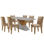Mesa Aster 180 Tampo Em Mdf E Vidro + 6 Cadeiras Liz Moderna Turim 07/off White/imbuiaQuando o assunto e jantar em casa, voce nao precisa se preocupar com nada alem do cardapio, certo? Entao, para que seus convidados se sintam em casa e ainda com aquele bom gosto, adquira o Conjunto de Mesa de Aster, um conjunto completo com tudo o que voce precisa para o evento perfeito: 6 cadeiras confortaveis, com detalhes de costuras alem de um puxador para dar um toque especial de charme; tampo muito bem dimensionado, vidro temperado com pintura especial e design um inovador e chamativo. Alem do visual moderno, a combinacao de cores tambem resulta em um movel louvavel que sera palco de belos momentos.Caracteristicas: Material: MDF e Vidro Garantia do Fabricante: 3 meses Informacoes Importantes: As tonalidades das cores podem sofrer alteracao de acordo com a configuracao de cada monitor. Os objetos que ambientam as fotos nao acompanham o produto. Nao disponibilizamos a montagem do produto. Nao nos responsabilizamos por danos no produto causado por montagem. Favor verificar o produto no ato da e em caso de problemas decorrentes no (arranhados, quebra, batida, amassados) deve-se efetuar a ressalva na para conhecimento da transportadora e comunicar imediatamente a . Moderna Mobilia reserva o direito de alterar as especificacoes tecnicas sem previo aviso. As medidas contidas no site podem sofrer variacoes de acordo com a montagem, tipo de costura etc. Verifique as dimensoes do produto e certifique-se que o percurso que ele fara ate o de uso permite sua passagem. Nao esta incluso no servico de o deslocamento ate o interior do apartamento (com ou sem elevador) ou deslocamento em locais de dificil acesso, como escadarias. Caso o cliente necessite de dentro desses padroes, deve entrar em com a responsavel para verificar. Se autorizado pela portaria do condominio, as sao feitas no piso terreo, e e o cliente que se responsabiliza por levar a mercadoria ate o proprio apartamento.