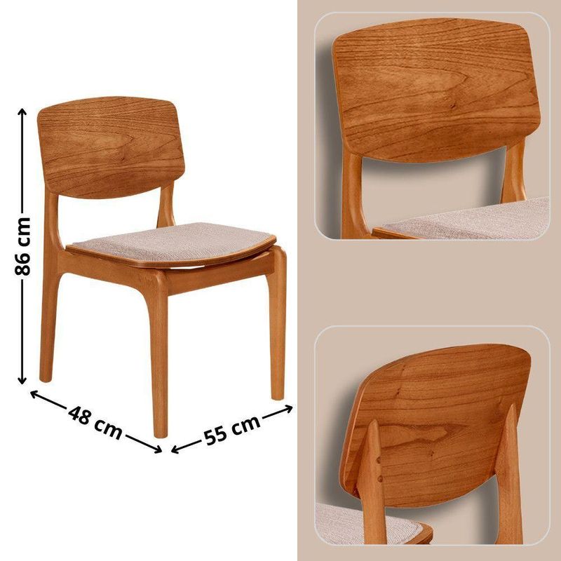 Mesa Com 4 Cadeiras Selene Malta Gold Moderna Mobília Brisa/ Imbuia Nat.O conjunto de mesa de jantar Selene com 4 cadeiras Malta Gold e a combinacao perfeita de design organico e modernidade. A mesa Selene, inspirada na beleza serena da natureza, traz um design atemporal e suave, que transforma qualquer ambiente em um refugio acolhedor e elegante. Suas linhas fluidas evocam a tranquilidade da natureza, enquanto sua estrutura solida transmite a forca e durabilidade dos troncos centenarios, criando o ambiente ideal para momentos especiais com amigos e familiares.As 4 cadeiras Malta Gold complementam a mesa de maneira impecavel. Construidas em madeira macica, elas oferecem resistencia e durabilidade, alem de um design minimalista e moderno que se destaca em qualquer ambiente. O assento estofado proporciona conforto extra, enquanto o encosto em madeira macica adiciona um charme rustico e natural ao conjunto, equilibrando perfeitamente funcionalidade e estilo.Juntos, a mesa Selene e as cadeiras Malta Gold criam um espaco sofisticado, elegante e acolhedor, ideal para quem busca um ambiente contemporaneo com um toque de qualidade e durabilidade.Caracteristicas:Tampo OrganicoMesa com base pre-montadaCadeiras sao entregues montadasMaterial da Estrutura: MadeiraPossui Vidro: NaoQuantidade de Cadeiras: 4 CadeirasDimensoes da Mesa:Altura: 80 cmLargura: 135 cmProfundidade: 135 cmDimensoes das Cadeiras:Altura: 85 cmLargura: 48 cmProfundidade: 55 cmGarantia do Fabricante: 03 MesesObservacoes:Os objetos que ambientam as fotos nao acompanham o produto.Nao disponibilizamos a montagem do produto.O produto acompanha manual de montagem. Nao nos responsabilizamos por danos no produto causados por montagem de qualquer outra forma que nao seja a descrita no manual.Verifique as dimensoes do produto e certifique-se que o percurso que ele fara ate o local de uso permite sua passagem.A Moderna Mobilia reserva o direito de alterar as especificacoes tecnicas sem previo aviso.As medidas contidas no site podem sofrer variacoes de acordo com a montagem, tipo de costura etc.A montagem sera de responsabilidade do comprador.Nao nos responsabilizamos, no ato da entrega, por subir escadas/elevadores em apartamentos.Eventuais despesas sao de responsabilidade do comprador.As tonalidades das cores podem sofrer alteracao de acordo com a configuracao de cada monitor.