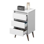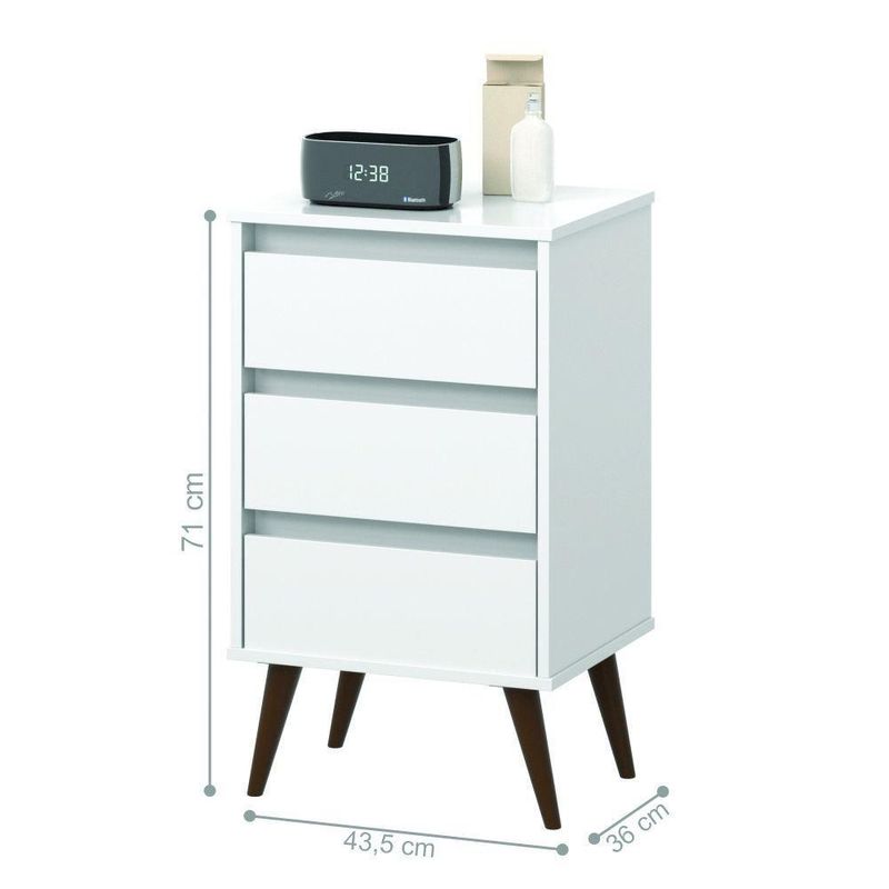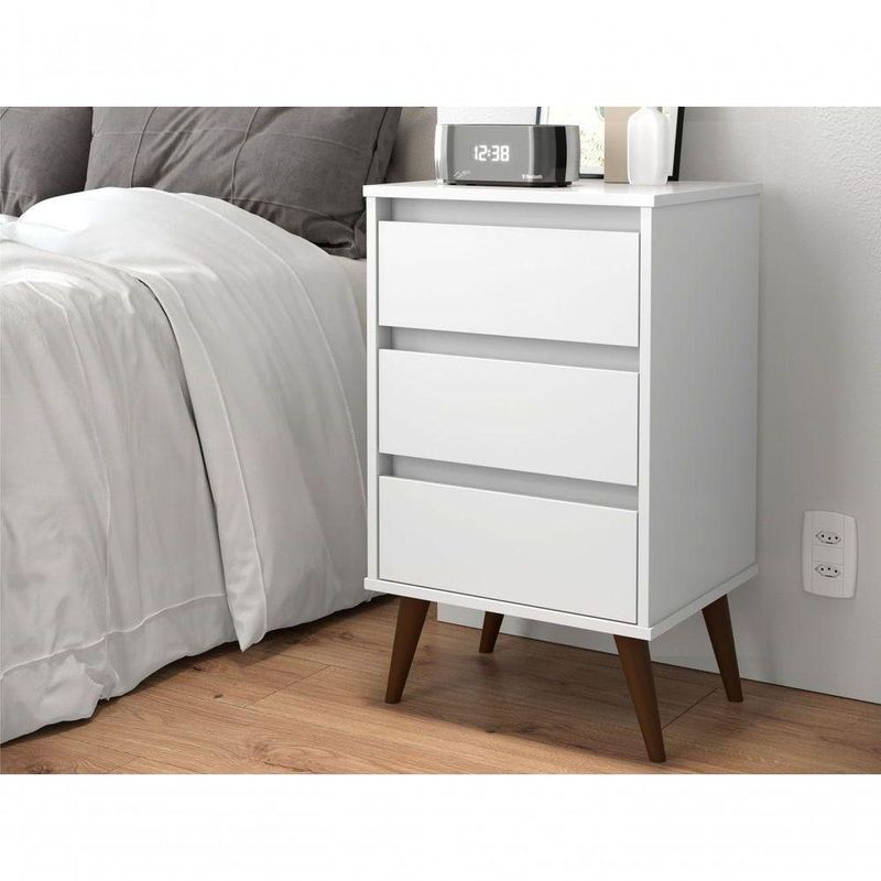 Mesa De Cabeceira Alecrim Retrô BrancoMesa de Cabeceira RetrôEstrutura elaborada em MDP de 15mm e Frente de Gaveta em 12mmModerno e pensado para garantir sofisticação ao ambiente, também armazenar seus pertences nas 03 gavetas acopladas ao produto.Móvel sem puxadores externos, trazendo charme e elegância.Em material MDP super resistente e leve, fácil de transportar03 gavetas;Sem puxadores externos;Pés retrô em plástico anti-umidade;Feito em MDPInformações do produto:Altura: 73 cmLargura: 43,5 cmComprimento: 36 cmCor: BrancoPossui Gavetas: Sim (3)Prateleira: NãoNicho: NãoPés: PalitosItens incls:01 Mesa de Cabeceira.Kit completo para montagem e manual de instruçõesGarantia: 3 meses contra defeito de fabricaçãoInformações Complementares:- Verificar o tamanho e detalhes do produto antes da compra.- Fotos meramente ilustrativa.- A rá o produto no andar térreo do endereço de .- Avaliar a mercadoria no ato do recebimento e recr em caso de divergência ou s.- Não nos responsabilizamos pela montagem e desmontagem do produto no ato da e devolução, assim como os custos gerados nestas situações.- Sugerimos a contratação de um montador para a montagem do produto. Não nos responsabilizamos por s cadas no ato da montagem.