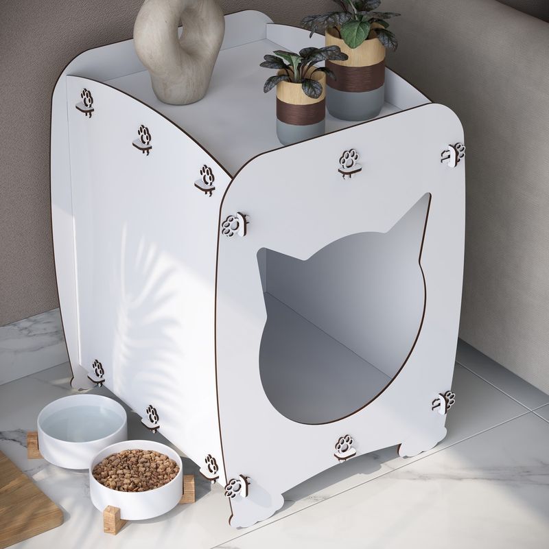 A Mesa de Cabeceira Casinha Pet Gato Cat oferece ao seu gato um local ideal para descansar com estilo. Fabricada em MDF de 4mm, com acabamento em tinta UV branca, Malbec ou MDF natural, é perfeita para ambientes internos. Com 55 cm de altura e 43 cm de largura, essa casinha tem uma entrada de 28,3 cm, proporcionando conforto e privacidade ao seu pet. Um refúgio aconchegante e cheio de estilo para o seu pet! Dimensões: Largura: 43,1 cmProfundidade: 46 cmAltura: 55 cmEntrada: 28,3 cm (Largura) x 28,3 cm (Altura) Características: Fabricado em MDF de 4mm, garantindo leveza e resistênciaMDF Natural – acabamento rústico e ecológico Pintura UV Branca – sofisticada e fácil de limpar Cor Malbec – tom elegante e moderno para combinar com qualquer ambienteDesign moderno e funcional, com recorte no formato do petMontagem prática e intuitiva – sistema de encaixe sem necessidade de ferramentasLeve e fácil de transportar – perfeito para qualquer ambiente da casaDetalhes decorativos com pegadas, trazendo um toque especial ao designMultifuncional – pode ser usado como cama ou espaço de descanso Observações:Uso recomendado apenas para ambientes internosNão resistente à umidade – evitar contato com água Os objetos que ambientam a foto não acompanham o produto- O produto é entregue desmontado e a montagem é de total responsabilidade do cliente- Valores de transporte por escadas e/ou elevadores, guinchamento ou içamento, assim como possíveis avarias provenientes de manuseio inadequado, também são de responsabilidade do comprador.- Produto acompanha manual de montagem, analise a complexidade antes de decidir montar por conta própria. Recomendamos sempre a contratação de um profissional.- Tenha atenção, as cores podem variar de acordo com a luz do monitor/tela utilizado.- Nossa loja não se responsabilizará por danos caso alguma das orientações acima seja descumprida.- Caso o produto for apresentado com a embalagem violada, orientamos que seja realizado a recusa da mercadoria e feito contato de imediato com o SAC. Conteúdo da Embalagem:1x Casinha Pet MDF (desmontada)Manual de instruções