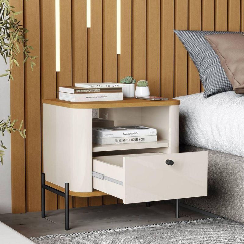 Mesa De Cabeceira Slim Tucupi Off White Com Nature Pe Preto - Moveis JbA Mesa de Cabeceira Slim Tucupí é perfeita para ambientes que exigem aproveitamento inteligente do espaço sem abrir mão de estilo.Com design moderno e linhas suaves, o modelo possui estrutura prática para apoiar objetos essenciais do dia a dia, como livros, eletrônicos, luminárias e itens decorativos.Seu formato mais estreito permite a aplicação em espaços reduzidos, como laterais de cama box ou ambientes com layout compacto.Fabricada 100% em MDF, a peça alia durabilidade, acabamento de alto padrão e versatilidade para diferentes estilos de quarto.Dimensões:Altura: 48,5cmLargura: 48cmProfundidade: 33cmObservações:- Produzida 100% em MDF com acabamento refinado- Estrutura compacta, ideal para ambientes menores- Tampo superior ideal para itens de uso pessoal e decorativo- Design clean com traços modernos e funcionais- Perfeita para compor laterais de cama com elegância e praticidade