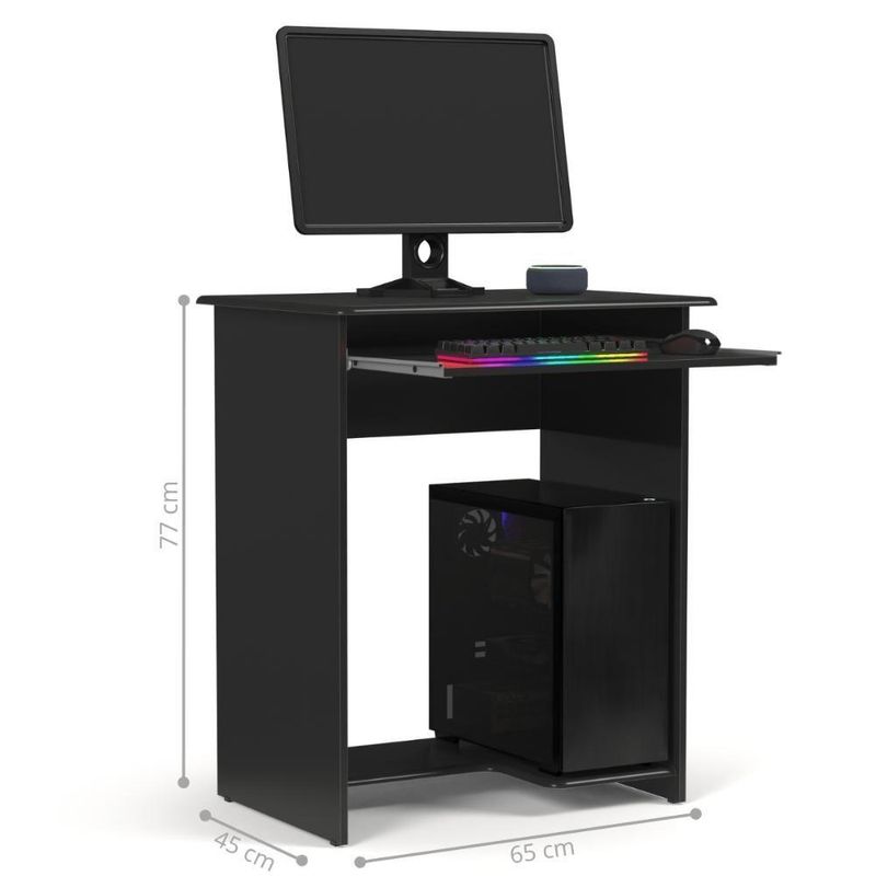 Mesa De Computador Escrivaninha Barcelona PretoA Mesa para Notebook Escrivaninha Pequena combina a funcionalidade em um ambiente compacto com o charme do design moderno. Crie um ambiente de trabalho ideal, melhore sua produtividade e não abra mão do conforto. Leve-a para seu home office, escritório e até mesmo no quarto. Dimensões do produto montado: Altura: 77 cm Largura: 65 cm Profundidade: 45 cm Características: - Material MDP - Cor preto - Prateleira - Pés Itens Incluso: 01 Mesa. Kit completo para montagem. Manual de montagem. Observações: - Não nos responsabilizamos pela montagem do produto. - Sistema de Montagem: Parafusos, Cavilhas e Tampos. - É recomendado que a montagem seja feita por um profissional qualificado. - As imagens indicam uma sugestão de uso e são apenas ilustrativas, os objetos decorativos não estão inclusos. - Ao iniciar a montagem, forre o chão com o papelão das embalagens para proteger as peças de arranhões. Instruções e Cuidados: Limpar com pano seco, manter em lugar livre de umidade, ao abrigo de exposição direta ao sol. PESO PRODUTO COM EMBALAGEM (KG): 12 | MARCA: CASAH | COMPRIMENTO DO PRODUTO (CM): 45 | LARGURA PRODUTO COM EMBALAGEM (CM): 45 | QUANTIDADE DE PRATELEIRAS: 1 | PESO DO PRODUTO (KG): 12 | COMPRIMENTO PRODUTO COM EMBALAGEM (CM): 76 | QUANTIDADE DE NICHOS: 1 | LARGURA DO PRODUTO (CM): 65 | PRODUTO: MESA PARA COMPUTADOR | GARANTIA DO FABRICANTE: 3 | QUANTIDADES DE CAIXAS DE EMBALAGEM: 1 | COR PREDOMINANTE: PRETO | CORES DO PRODUTO (FILTRO DE CORES): PRETO | DESCRIÃ?Ã?O DO TAMANHO: 77X65X45 | MATERIAL PRINCIPAL: MDP | ESTADO DE ORIGEM: SP | INSTRUÃ?Ã-ES/CUIDADOS: Limpar com pano macio e seco, não utilizar produtos abrasivos. | PRODUTO PRECISA DE MONTAGEM?: Sim, a montagem à facil mas sugerimos a contratação de um montador profissional para a montagem do produto. Não nos responsabilizamos por danos causados no ato da montagem. | ALTURA DO PRODUTO (CM): 77 | ALTURA DO PRODUTO COM EMBALAGEM (CM): 8