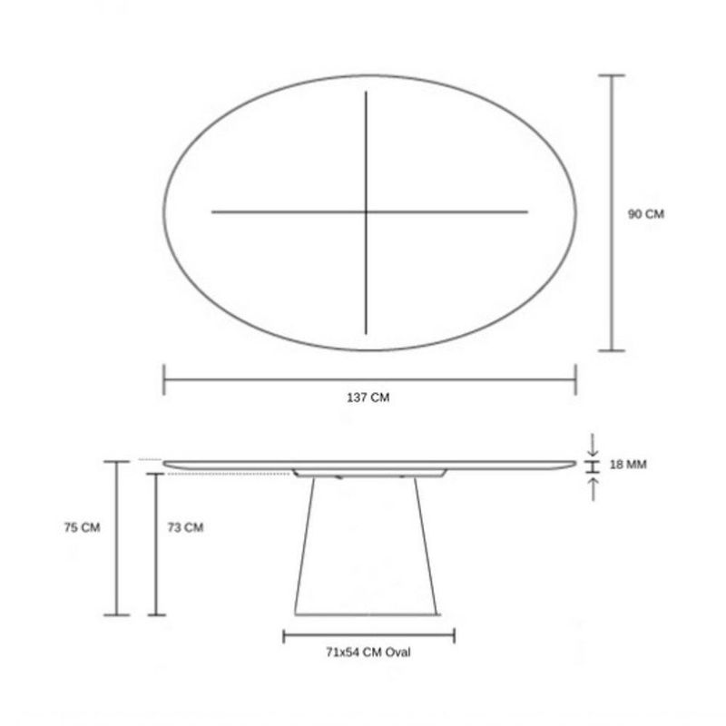 Mesa De Jantar Cone Oval 137x90 Cm Base Laminada Em Madeira Freijó Cor PretoDimensões: Altura: 75 cm Largura: 137 cm Profundidade: 90 cm Estrutura em Fiberglass Laminada em Madeira l Freijó com contra tampo em MDF 18 mm e um Tampo de 137x90cm em MDF 18 mm Laminada em Madeira l. A mesa de Jantar Cone Oval Laminada de alto padrão foi criada para possibilitar um design moderno com usabilidade para a sala de jantar, seu formato em cone mantém o espaçamento para as pernas dando conforto ao usá-la, é requintada se adequando a qualquer tipo de ambiente, clássico ou moderno, seu design é valorizado em decorações residenciais ou comerciais, elas são ideais para ambientes sofisticados. Ter um uma mesa Cone em casa ou no escritório é sinal de extremo bom gosto! (ATENÇÃO AS MESAS NÃO ACOMPANHAS AS CADEIRAS) Medidas por Quantidade de Lugares Redonda: 60 cm – 2 lugares 70 cm – 3 lugares 80 cm / 90 cm / 100 cm – 4 lugares 107/110 cm – 4 á 5 lugares 120 cm – 4 á 6 lugares 130 cm – 6 lugares 140 cm – 8 lugares 150 cm – 10 lugares 160 cm – 10 á 12 lugares Oval: 120x90 / 137x90 / 140x90 – 4 lugares 160x90 – 4 á 6 lugares 180x100 – 6 lugares 198x122 – 8 lugares 235x122 – 8 á 10 lugares 244x137 – 10 á 12 lugares CASO HAJA NECESSIDADE DE MONTAR A SUA MESA CONE: Centralize o tampo principal em cima do contra tampo, e com auxílio de uma chave Philips fixe os parafusos do contra tampo no tampo principal, (parafuso fornecidos pela nossa empresa). CUIDADOS A SEREM TOMADOS: Devido ao peso, cuidado ao manusear o produto. Verifique as normas de do seu condomínio. Não trabalhamos com içamento nas s A transportadora não faz nenhum tipo de montagem. Caso o edifício não tenha elevador ou o produto não caiba, o produto será entregue no térreo. Caso deseje a mesa em outra cor e não tem a foto, após a compra com nosso e mandaremos as opções de cores para você realizar a compra dos seus sonhos.Informações Técnicas