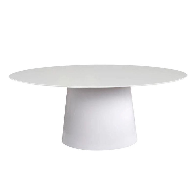 Mesa de Jantar Cone Oval 198x122 Laqueada Yescasa BrancoA mesa de Jantar Cone Oval de alto padrão foi criada para possibilitar um design moderno com usabilidade para a sala de jantar, seu formato em cone mantém o espaçamento para as pernas dando conforto ao usá-la, é requintada se adequando a qualquer tipo de ambiente, clássico ou moderno, seu design é valorizado em decorações residenciais ou comerciais, elas são ideais para ambientes sofisticados. Ter um uma mesa Cone em casa ou no escritório é sinal de extremo bom gosto! (ATENÇÃO AS MESAS NÃO ACOMPANHAS AS CADEIRAS)ESPECIFICAÇÕES TÉCNICAS:- Altura: 75 cm - Largura: 198 cm - Profundidade: 122 cm CARACTERÍSTICAS:Estrutura em Fiberglass com pintura automotiva, contra tampo em MDF 18 mm e um tampo de 198x122 cm MDF Laminada em Madeira de 18mm. Medidas por Quantidade de Lugares 60 cm – 2 lugares 70 cm – 3 lugares 80 cm / 90 cm / 100 cm – 4 lugares 107/110 cm – 4 á 5 lugares 120 cm – 4 á 6 lugares 130 cm – 6 lugares 140 cm – 8 lugares 150 cm – 10 lugares 160 cm – 10 á 12 lugares Oval 110x80 cm - 3 lugares 120x90 / 137x90 / 140x90 – 4 lugares 160x90 – 4 á 6 lugares 180x100 – 6 lugares 198x122 – 8 lugares 235x122 – 8 á 10 lugares 244x137 – 10 á 12 lugares CASO HAJA NECESSIDADE DE MONTAR A SUA MESA CONE: Centralize o tampo principal em cima do contra tampo, e com auxílio de uma chave Philips fixe os parafusos do contra tampo no tampo principal, (parafuso fornecidos pela nossa empresa). CUIDADOS A SEREM TOMADOS: Devido ao peso, cuidado ao manusear o produto. Verifique as normas de entrega do seu condomínio. Não trabalhamos com içamento nas entregas A transportadora não faz nenhum tipo de montagem. Caso o edifício não tenha elevador ou o produto não caiba, o produto será entregue no térreo.