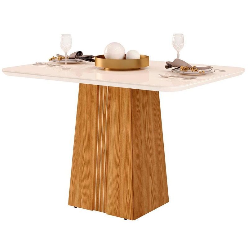 Decore a sua sala de jantar e disponibilize um excelente espaço para as refeições em família ou amigos com a linha de móveis da DJ. Feita em MDP e MDF de máxima qualidade e durabilidade, a mesa modelo Raquel conta com design exclusivo da marca, em formato de trapézio, canais decorativos no centro da base, tampo de madeira chanfrado com vidro, sapatas plásticas, acabamento em pintura UV e capacidade para suportar até 15kg muito bem distribuídos.