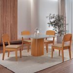 Mesa De Jantar Eloise 90cm Tampo Mdf 4 Cadeiras Copper Turim 07/nat/off/serig. OffConjunto Sala de Jantar Mesa Eloise e Cadeira CopperA Mesa Eloise e uma peca de design sofisticado, com tampo em MDF Vidro canto copo, que adiciona elegancia e modernidade ao ambiente. Seu grande destaque esta nas bases com formato de torres, que trazem um visual marcante. A Cadeira Copper combina design contemporaneo e conforto, com encosto em MDF moldado que oferece suporte ergonomico ideal. Seu estofado acolhedor garante um assento confortavel, enquanto o acabamento refinado e detalhes sofisticados valorizam seu visual, tornando-a perfeita para ambientes modernos e elegantes. Caracteristicas: Marca: Moderna Mobilia Modelo: Eloise / Copper Material: MDF Tampo: Canto Copo Com Vidro Dimensoes da Cadeira: Altura: 91 cm Largura: 45 cm Profundidade: 54 cm Dimensoes Mesa: Altura: 80 cm Largura: 90 cm Profundidade: 90 cm Garantia do Fabricante: 03 meses. Observacoes: Os objetos que ambientam as fotos nao acompanham o produto. Nao disponibilizamos a montagem do produto. O produto acompanha manual de montagem. Nao nos responsabilizamos por danos no produto causados por montagem de qualquer outra forma que nao seja a descrita no manual. Verifique as dimensoes do produto e certifique-se que o percurso que ele fara ate o local de uso permite sua passagem. A Moderna Mobilia reserva o direito de alterar as especificacoes tecnicas sem previo aviso. As medidas contidas no site podem sofrer variacoes de acordo com a montagem, tipo de costura etc. A montagem sera de responsabilidade do comprador. Nao nos responsabilizamos, no ato da entrega, por subir escadas/elevadores em apartamentos. Eventuais despesas sao de responsabilidade do comprador. As tonalidades das cores podem sofrer alteracao de acordo com a configuracao de cada monitor.