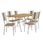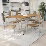 Essencial Para um Ambiente Sofisticado Para tornar seu ambiente ainda mais completo e cheios de momentos especiais, aposte no Mesa de Jantar Kappesberg Milano com 6 Cadeiras Estofadas. Com design diferenciado, traz estrutura tubular circular e pés em formato de "K", proporcionando um toque de moderno à decoração. Tampo de Alta Qualidade Seu tampo retangular, feito em chapa MDP de 25 mm, garante robustez, firmeza e qualidade. Suas pontas chanfradas oferecem maior segurança e praticidade, além de ser ideal para todos os ambientes, desde a cozinha até a sala de jantar. Cadeiras Confortáveis e Elegantes As cadeiras possuem uma estrutura metálica cromada que garante máxima resistência e durabilidade. O assento é estofado e revestido com corino, enquanto o encosto apresenta um detalhe central estofado, proporcionando conforto adicional durante as refeições. Praticidade e Elegância em Um Só Conjunto A Mesa Retangular com cadeiras estofadas Kappesberg é fácil de montar, tornando-se perfeita para quem deseja renovar o ambiente de forma prática e eficiente. Seja para um jantar em família ou um encontro com amigos, este conjunto traz aconchego para diversas ocasiões.