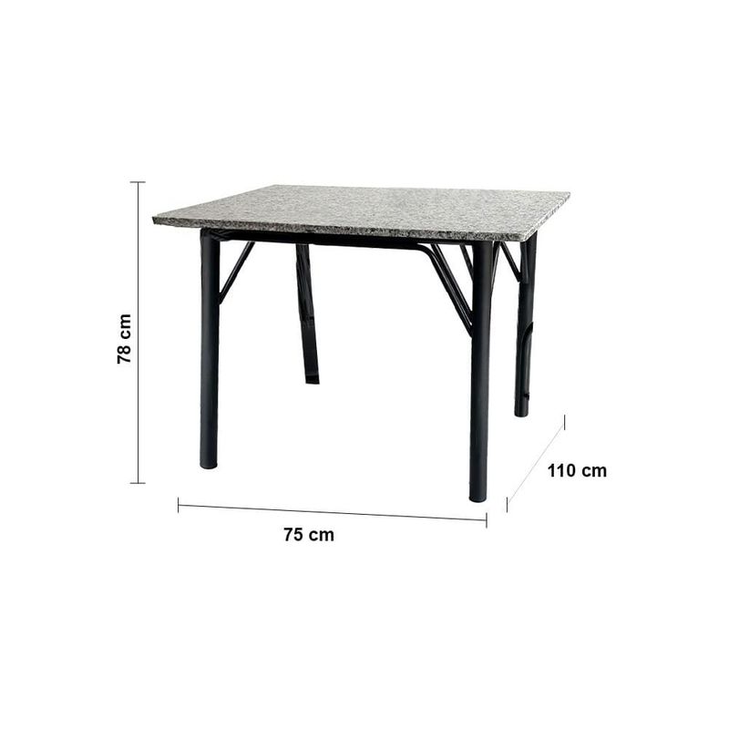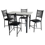 Design moderno e funcionalO Conjunto de Mesa Cairo é a escolha perfeita para quem busca um design moderno e funcional. Com um tampo de granito, a mesa traz elegância e sofisticação ao ambiente, sendo ideal para salas de jantar ou cozinhas. A estrutura é feita de aço carbono, garantindo resistência e durabilidade, enquanto o tom preto confere um toque contemporâneo, adaptando-se facilmente a diferentes estilos de decoração.Mais conforto e praticidadeAcompanha quatro cadeiras que proporcionam o máximo de conforto, graças à densidade de espuma do assento, que é D13, ideal para garantir o bem-estar durante as refeições. As cadeiras são projetadas para oferecer suporte adequado e conforto prolongado. Além disso, o conjunto vem com sapatas plásticas, evitando danos ao piso e proporcionando maior estabilidade.