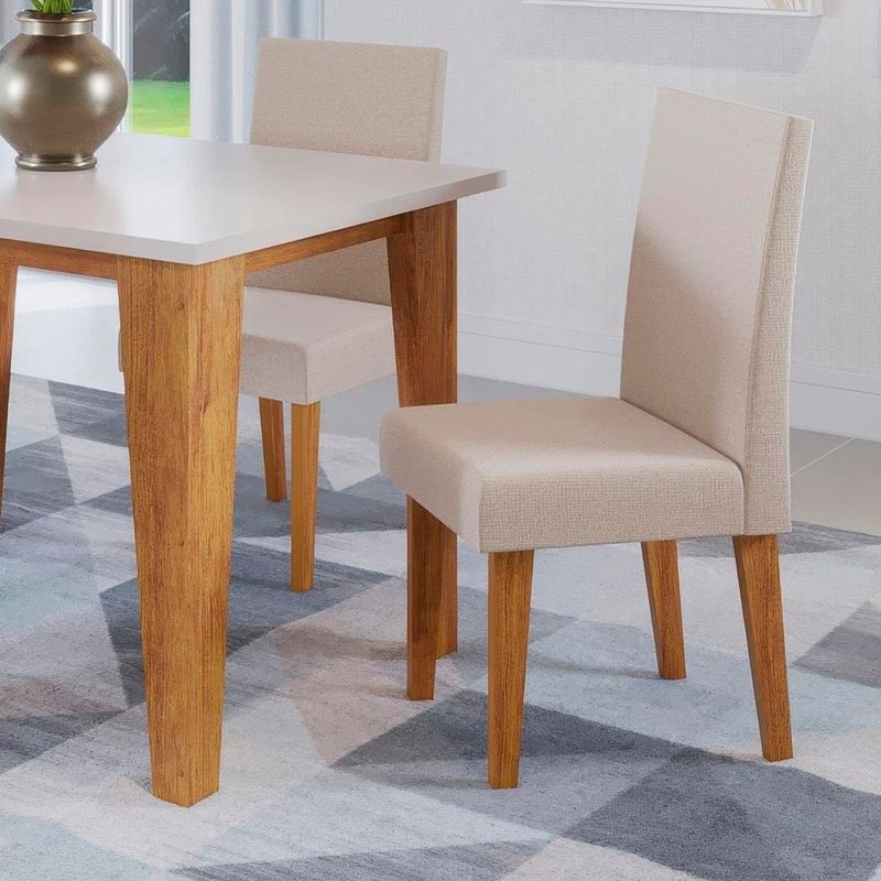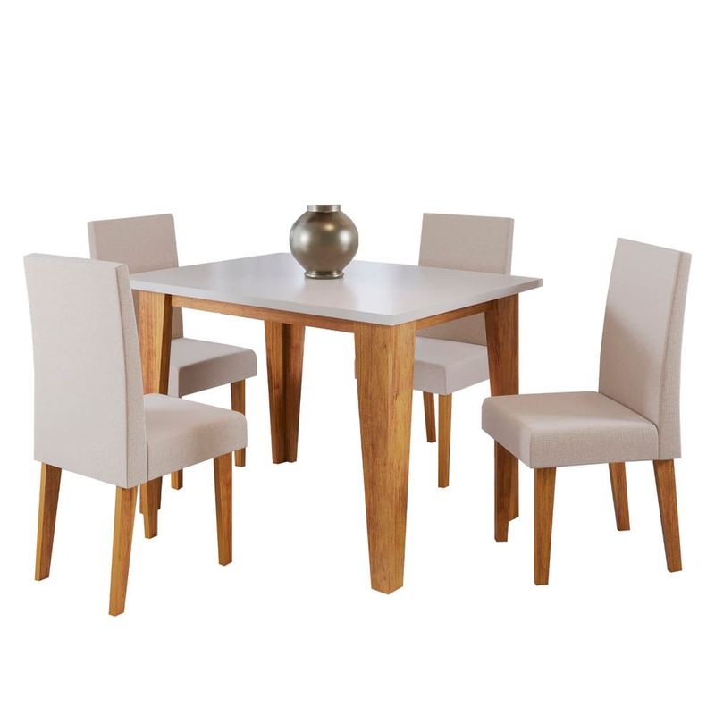 Deixe seu ambiente perfeito para compartilhar históriasO Conjunto de Jantar Latina com 4 Cadeiras Venus chegou para transformar um dos cantinhos mais queridos da sua casa. Com um design elegante e moderno, ele estará presente no dia a dia da sua família, tornando os momentos das refeições ainda mais especiais.Combinação perfeita de funcionalidade e belezaA Mesa de Jantar Retangular é fabricada em MDP, com um tampo de 1,20x80 cm e espessura de 25 mm, garantindo durabilidade e resistência. Suportando até 50 kg, a mesa é ideal tanto para refeições cotidianas quanto para ocasiões especiais. As cadeiras estofadas, com estrutura em MDP/MDF, oferecem conforto e estilo, com assentos revestidos em tecido linho e espuma D20, suportando até 90 kg cada uma.Versatilidade e Praticidade o Conjunto de Jantar com 4 Cadeiras pode ser utilizado tanto na sala de jantar quanto na cozinha, adaptando-se ao seu estilo de vida e às necessidades do seu lar. Aposte na qualidade e no design do Conjunto de Jantar Latina Venus para renovar o seu espaço e tornar cada refeição uma experiência única.