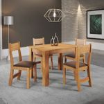 Mais Conforto e Hospitalidade O Conjunto de Mesa Tulipa, composto por uma mesa e quatro cadeiras, garante usabilidade plena no dia a dia de uma casa. O móvel pode ser utilizado na cozinha ou na sala de jantar, garantindo amplo espaço para uma refeição compartilhada com amigos ou familiares. Design Diferenciado e Resistente Sinônimo de sofisticação, a mesa e as cadeiras possuem estrutura em MDP/MDF 15 em 18mm, que garantem mais durabilidade e resistência. Com formato retangular, a mesa suporta até 50Kg e as cadeiras até 80Kg. Elegância e Funcionalidade Com cadeiras estofadas em veludo e de alta qualidade, você adiciona um toque de charme à sua casa. Seja para o dia a dia ou para momentos especiais, esse móvel torna o ambiente acolhedor e convidativo.