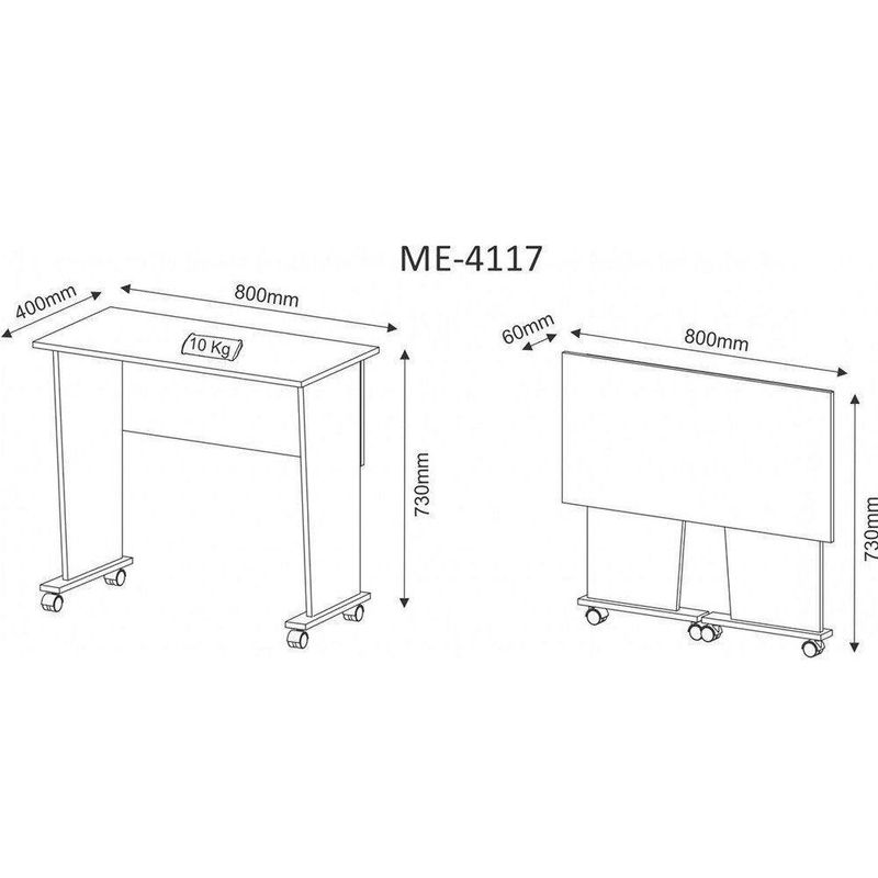 Mesa Dobrável para Notebook ME4117 Branco - Tecno MobiliDescrição do Produto:A Mesa Dobrável é ideal e excelente que oferece praticidade e qualidade, pois não ocupa muito espaço podendo ser guardada e usada em qualquer tipo de ambiente, além disso, proporciona pés de rodízios reforçados que possibilitam deslize fácil e maciez. A mesa pode ser usada para Notebook, estudos ou até mesmo refeições, realmente é um produto que ajudará muito no seu dia-a-dia!Especificações:- Estrutura 100% MDP 15mm- Acabamento em BP- Pés de Rodízios PVC- Dobradiças Metálicas- Suporta até 10Kg- Acompanha manual e todos os acessórios para montagem- Recomendamos que a montagem seja feita por um profissionalDimensão do Produto (L x A x P):80 X 73 x 40cmPeso do Produto:10KgVolume:- 01 UnidadeObservações importantes:- As imagens são meramente ilustrativas e não acompanham objetos de decoração e eletros.- Pode haver alguma diferença de tonalidade entre a imagem e o produto, por conta do tratamento de imagens e a calibração de cores da sua tela.- Todos os nossos produtos são enviados devidamente embalados e com total segurança.- Ao receber o produto o cliente deve verificar as condições da embalagem, havendo alguma avaria não assine o comprovante de recebimento, entre em contato com a loja para orientações.- Nosso estoque é dinâmico e a disponibilidade específica de determinado produto está sujeita a confirmação.- Todos os produtos estão sujeitos à alteração de preço sem aviso prévio.- A nossa loja se responsabilizará pela entrega dos produtos adquiridos até a porta de entrada ou portaria do endereço indicado.- Não nos responsabilizamos, no ato da entrega, por montagens, desmontagens e instalações de produtos, bem como, por subir ou descer escadas/elevadores ou pela utilização de guinchos ou equipamentos similares para acesso a pisos superiores em apartamentos, casas ou escritórios. Estas despesas adicionais serão de responsabilidade do cliente.- Confira as dimensões do produto no momento da compra e certifique-se de que passará normalmente por elevadores, portas, escadas e/ou corredores, evitando assim futuros desagrados ou imprevistos com a entrega do produto.Marca :TECNO MOBILIReferência :ME4117.0001Garantia :90 Dias após o recebimento do produto