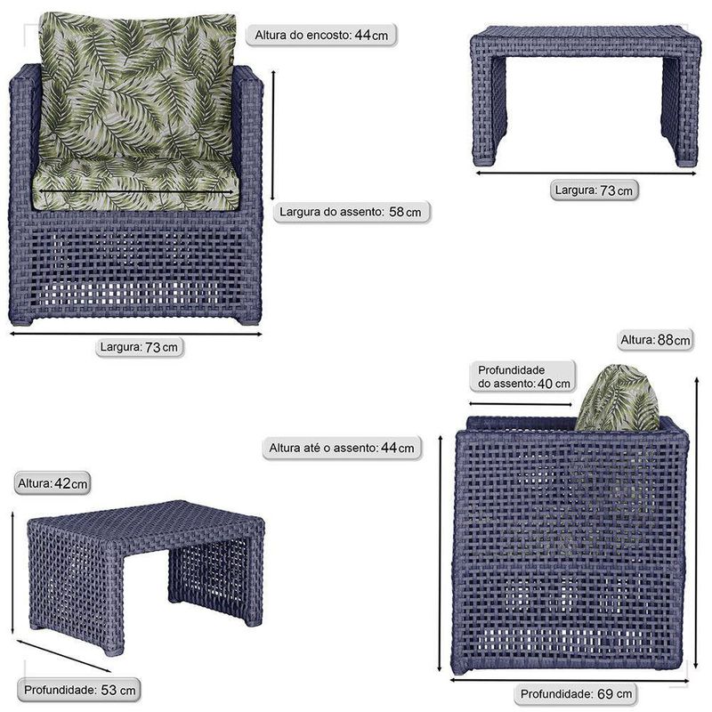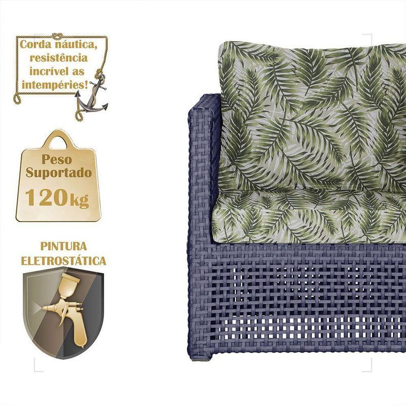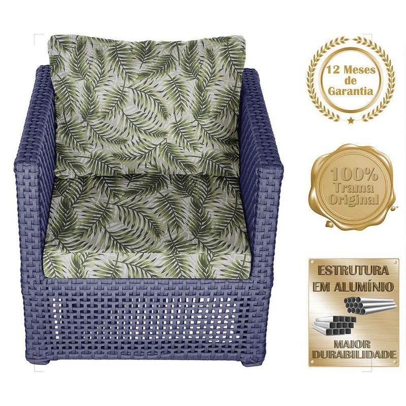 Mesa E 1 Poltrona Madri Corda Náutica Estofado 5 Trama AzulOBS: MANTENHA OS SEUS DADOS CADASTRAIS ATUALIZADOS, COMO ENDERECO E TELEFONE PARA CONTATO!Eleve o padrao da sua decoracao com a Poltrona Madri. Produzida em aluminio de alta resistencia e corda nautica premium, combina design moderno com durabilidade impecavel. O estofado em tecido impermeavel garante conforto e praticidade, mantendo sua beleza impecavel mesmo em areas externas. Design sofisticado para ambientes de alto padrao Materiais nobres que resistem ao tempo Conforto superior para receber com estilo Ideal para varandas, lounges, salas e areas gourmet Transforme qualquer espaco em um refugio de requinte e bom gosto. Adquira agora e descubra como o luxo tambem pode ser confortavel. Iten Incluso 01 Poltrona 01 Mesa De Centro Especificacoes Do Produto Medidas Da Poltrona Largura Total: 88 Cm Largura Do Assento: 58 Cm Altura Do Encosto: 44 Cm Altura ate o Assento: 44 Cm Profundidade Do Assento: 40 Cm Profundidade Total: 69 Cm Medidas Da Poltrona Altura: 42 Cm Largura: 73 Cm Profundidade: 53 Cm Por Se Tratar De Um Produto Artesanal Suas Medidas Podem Conter Pequenas Variacoes. Material Do Acabamento: Pintura. Material Da Estrutura: Aluminio. Material Da Trama: Corda Nautica. Material Do Estofado: Espuma E Tecido Impermeavel. Pintura: Eletrostatica Solda: Soldado Mig, De Alta Resistencia. Marca: Trama Original Fabricante: Trama Original Garantia: 12 Meses Contra Defeitos De Fabrica. Ideal para ambientes Internos, varandas, ediculas, area de lazer, salas de estar, sala de jogos, churrasqueiras, sala de filme, recepcao, sala de espera entre outros. Eleve sua experiencia de relaxamento com essa peca exclusiva! OBS: Fotos meramente ilustrativas. Tonalidades podem variar dependendo do monitor. Os objetos que ambientam as Fotos nao acompanham o produto. Antes de comprar o seu produto verifique as medidas, o local onde pretende instalar e se necessario contratar o servico de um profissional qualificado. Produto conhecido como: poltrona aluminio, poltrona corda nautica, poltrona estofado impermeavel, poltrona para varanda gourmet, poltrona area externa luxo, poltrona de design sofisticado, poltrona moderna aluminio e corda
