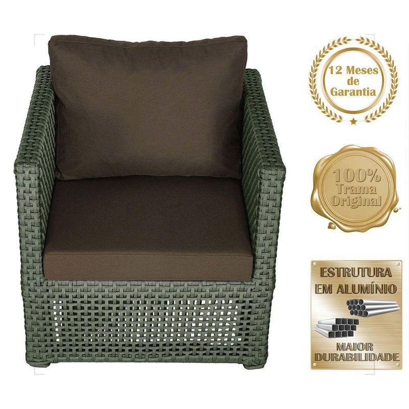 Mesa E 1 Poltrona Madri Corda Náutica Estofado 9 Trama VerdeOBS: MANTENHA OS SEUS DADOS CADASTRAIS ATUALIZADOS, COMO ENDERECO E TELEFONE PARA CONTATO!Eleve o padrao da sua decoracao com a Poltrona Madri. Produzida em aluminio de alta resistencia e corda nautica premium, combina design moderno com durabilidade impecavel. O estofado em tecido impermeavel garante conforto e praticidade, mantendo sua beleza impecavel mesmo em areas externas. Design sofisticado para ambientes de alto padrao Materiais nobres que resistem ao tempo Conforto superior para receber com estilo Ideal para varandas, lounges, salas e areas gourmet Transforme qualquer espaco em um refugio de requinte e bom gosto. Adquira agora e descubra como o luxo tambem pode ser confortavel. Item Incluso 01 Poltrona 01 Mesa De Centro Especificacoes Do Produto Medidas Da Poltrona Largura Total: 88 Cm Largura Do Assento: 58 Cm Profundidade Total: 69 Cm Profundidade Do Assento: 40 Cm Altura Do Encosto: 44 Cm Altura Ate O Assento: 44 Cm Por Se Tratar De Um Produto Artesanal Suas Medidas Podem Conter Pequenas Variacoes. Material Do Acabamento: Pintura. Material Da Estrutura: Aluminio. Material Da Trama: Corda Nautica. Material Do Estofado: Espuma E Tecido Impermeavel. Pintura: Eletrostatica Solda: Soldado Mig, De Alta Resistencia. Marca: Trama Original Fabricante: Trama Original Garantia: 12 Meses Contra Defeitos De Fabrica. Ideal para ambientes Internos, varandas, ediculas, area de lazer, salas de estar, sala de jogos, churrasqueiras, sala de filme, recepcao, sala de espera entre outros. Eleve sua experiencia de relaxamento com essa peca exclusiva! OBS: Fotos meramente ilustrativas. Tonalidades podem variar dependendo do monitor. Os objetos que ambientam as Fotos nao acompanham o produto. Antes de comprar o seu produto verifique as medidas, o local onde pretende instalar e se necessario contratar o servico de um profissional qualificado. Produto conhecido como: poltrona aluminio, poltrona corda nautica, poltrona estofado impermeavel, poltrona para varanda gourmet, poltrona area externa luxo, poltrona de design sofisticado, poltrona moderna aluminio e corda.