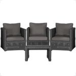 Mesa E 3 Poltronas Madri Corda Náutica Estofado 11 Trama PretoOBS: MANTENHA OS SEUS DADOS CADASTRAIS ATUALIZADOS, COMO ENDERECO E TELEFONE PARA CONTATO!Eleve o padrao da sua decoracao com a Poltrona Madri. Produzida em aluminio de alta resistencia e corda nautica premium, combina design moderno com durabilidade impecavel. O estofado em tecido impermeavel garante conforto e praticidade, mantendo sua beleza impecavel mesmo em areas externas. Design sofisticado para ambientes de alto padrao Materiais nobres que resistem ao tempo Conforto superior para receber com estilo Ideal para varandas, lounges, salas e areas gourmet Transforme qualquer espaco em um refugio de requinte e bom gosto. Adquira agora e descubra como o luxo tambem pode ser confortavel. Iten Incluso 03 Poltronas 01 Mesa De Centro Especificacoes Do Produto Medidas Da Poltrona Largura Total: 88 Cm Largura Do Assento: 58 Cm Profundidade Total: 69 Cm Profundidade Do Assento: 40 Cm Altura Do Encosto: 44 Cm Altura Ate O Assento: 44 Cm Por Se Tratar De Um Produto Artesanal Suas Medidas Podem Conter Pequenas Variacoes. Material Do Acabamento: Pintura. Material Da Estrutura: Aluminio. Material Da Trama: Corda Nautica. Material Do Estofado: Espuma E Tecido Impermeavel. Pintura: Eletrostatica Solda: Soldado Mig, De Alta Resistencia. Marca: Trama Original Fabricante: Trama Original Garantia: 12 Meses Contra Defeitos De Fabrica. Ideal para ambientes Internos, varandas, ediculas, area de lazer, salas de estar, sala de jogos, churrasqueiras, sala de filme, recepcao, sala de espera entre outros. Eleve sua experiencia de relaxamento com essa peca exclusiva! OBS: Fotos meramente ilustrativas. Tonalidades podem variar dependendo do monitor. Os objetos que ambientam as Fotos nao acompanham o produto. Antes de comprar o seu produto verifique as medidas, o local onde pretende instalar e se necessario contratar o servico de um profissional qualificado. Produto conhecido como: poltrona aluminio, poltrona corda nautica, poltrona estofado impermeavel, poltrona para varanda gourmet, poltrona area externa luxo, poltrona de design sofisticado, poltrona moderna aluminio e corda.
