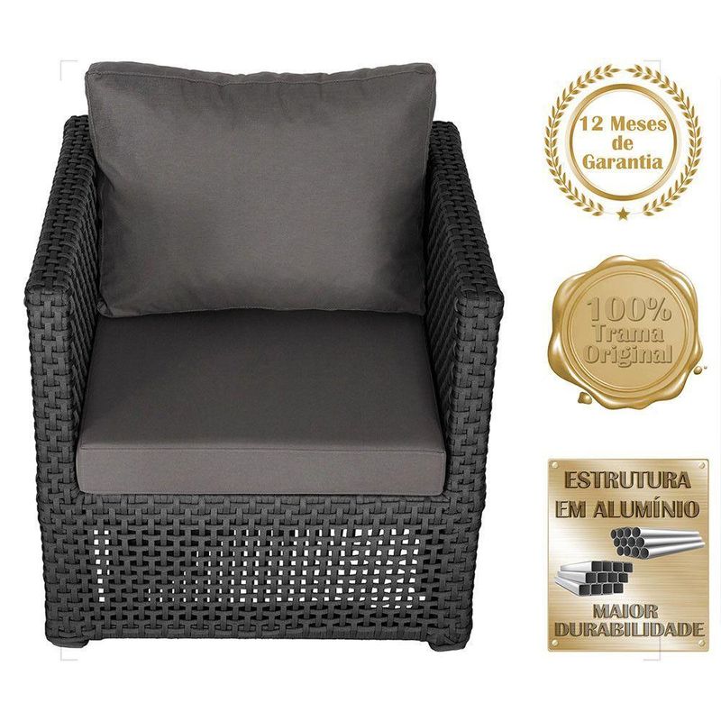 Mesa E 4 Poltronas Madri Corda Náutica Estofado 11 Trama PretoOBS: MANTENHA OS SEUS DADOS CADASTRAIS ATUALIZADOS, COMO ENDERECO E TELEFONE PARA CONTATO!Eleve o padrao da sua decoracao com a Poltrona Madri. Produzida em aluminio de alta resistencia e corda nautica premium, combina design moderno com durabilidade impecavel. O estofado em tecido impermeavel garante conforto e praticidade, mantendo sua beleza impecavel mesmo em areas externas. Design sofisticado para ambientes de alto padrao Materiais nobres que resistem ao tempo Conforto superior para receber com estilo Ideal para varandas, lounges, salas e areas gourmet Transforme qualquer espaco em um refugio de requinte e bom gosto. Adquira agora e descubra como o luxo tambem pode ser confortavel. Item Incluso 04 Poltronas 01 Mesa De Centro Especificacoes Do Produto Medidas Da Poltrona Largura Total: 88 Cm Profundidade Total: 69 Cm Altura Do Encosto: 44 Cm Altura Ate O Assento: 44 Cm Largura Do Assento: 58 Cm Profundidade Do Assento: 40 Cm Por Se Tratar De Um Produto Artesanal Suas Medidas Podem Conter Pequenas Variacoes. Material Do Acabamento: Pintura. Material Da Estrutura: Aluminio. Material Da Trama: Corda Nautica. Material Do Estofado: Espuma E Tecido Impermeavel. Pintura: Eletrostatica Solda: Soldado Mig, De Alta Resistencia. Marca: Trama Original Fabricante: Trama Original Garantia: 12 Meses Contra Defeitos De Fabrica. Ideal para ambientes Internos, varandas, ediculas, area de lazer, salas de estar, sala de jogos, churrasqueiras, sala de filme, recepcao, sala de espera entre outros. Eleve sua experiencia de relaxamento com essa peca exclusiva! OBS: Fotos meramente ilustrativas. Tonalidades podem variar dependendo do monitor. Os objetos que ambientam as Fotos nao acompanham o produto. Antes de comprar o seu produto verifique as medidas, o local onde pretende instalar e se necessario contratar o servico de um profissional qualificado. Produto conhecido como: poltrona aluminio, poltrona corda nautica, poltrona estofado impermeavel, poltrona para varanda gourmet, poltrona area externa luxo, poltrona de design sofisticado, poltrona moderna aluminio e corda.